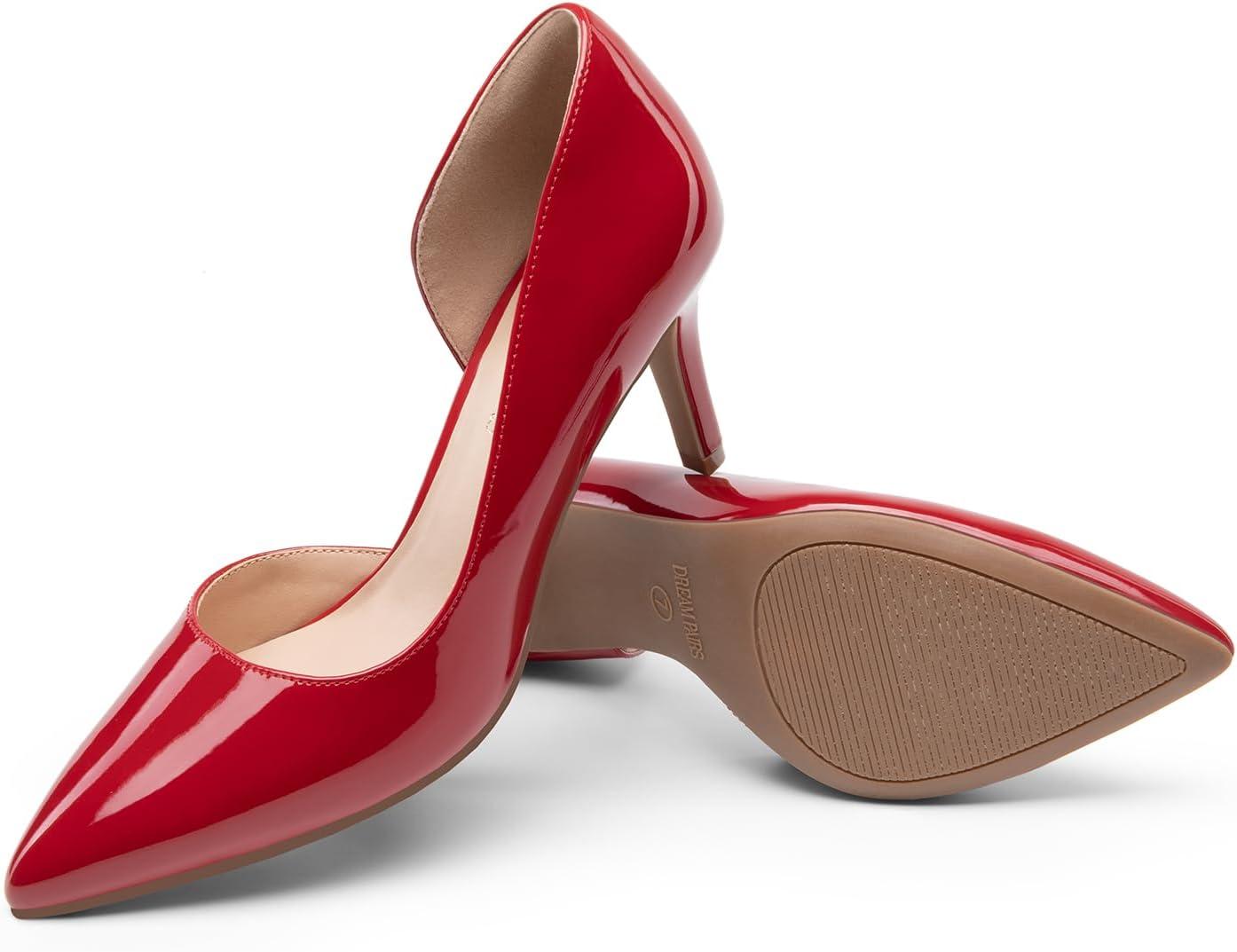 DREAM PAIRS Women’s Dress High Heels Pumps Closed Pointed Toe Stiletto D’Orsay Shoes for Wedding Party(Red-pat)