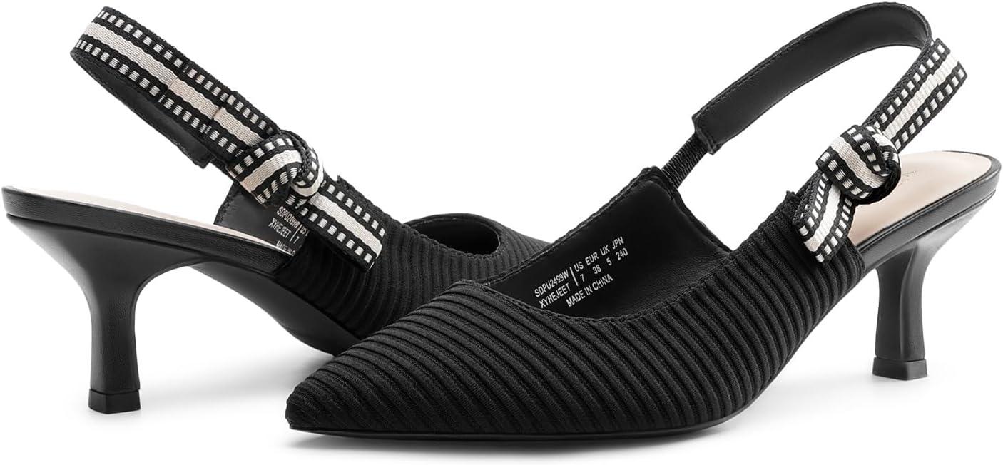 DREAM PAIRS Women’s Kitten Heel Slingback Pointed Closed Toe Low Stiletto Heels Dress Bridal Elegant Wedding Pumps Shoes(Black)