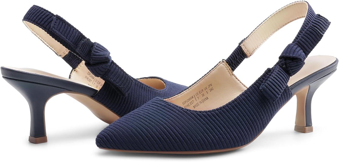 DREAM PAIRS Women’s Kitten Heel Slingback Pointed Closed Toe Low Stiletto Heels Dress Bridal Elegant Wedding Pumps Shoes(Navy-suede)
