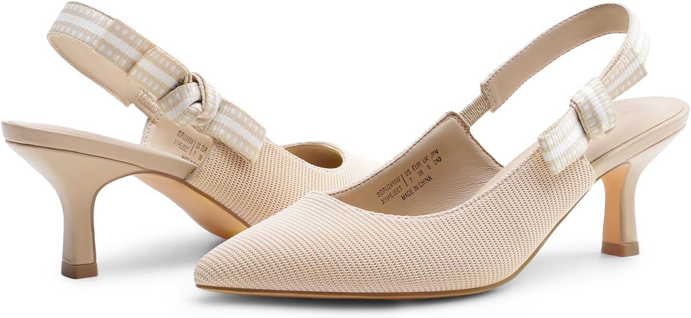 DREAM PAIRS Women’s Kitten Heel Slingback Pointed Closed Toe Low Stiletto Heels Dress Bridal Elegant Wedding Pumps Shoes(Nude)