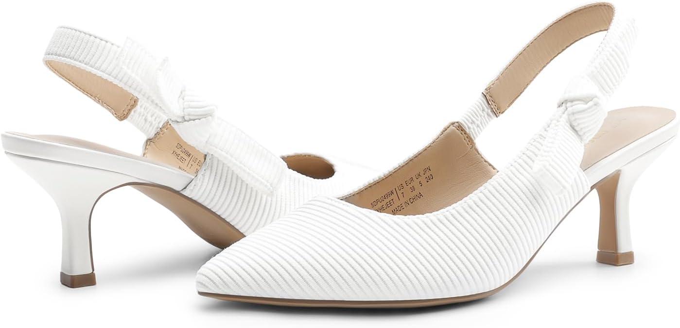 DREAM PAIRS Women’s Kitten Heel Slingback Pointed Closed Toe Low Stiletto Heels Dress Bridal Elegant Wedding Pumps Shoes(White-pu)