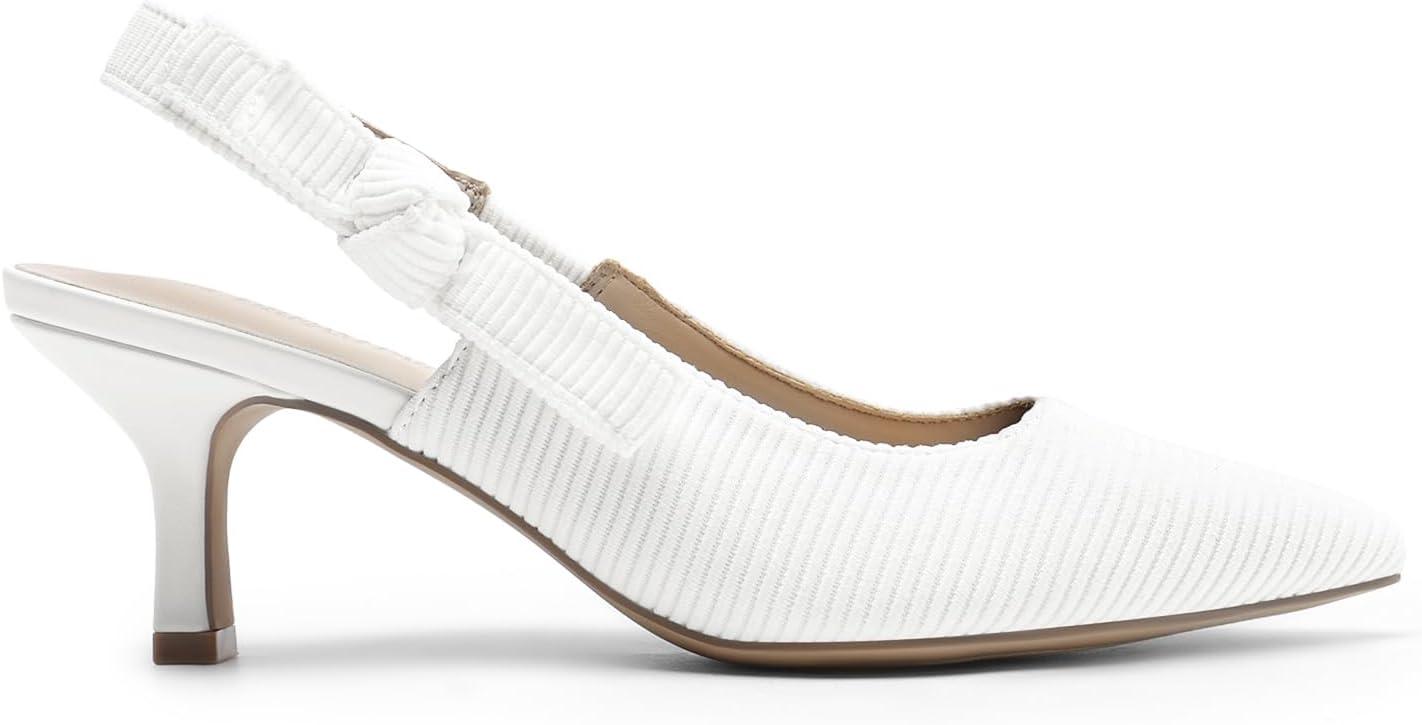 DREAM PAIRS Women’s Kitten Heel Slingback Pointed Closed Toe Low Stiletto Heels Dress Bridal Elegant Wedding Pumps Shoes(White)