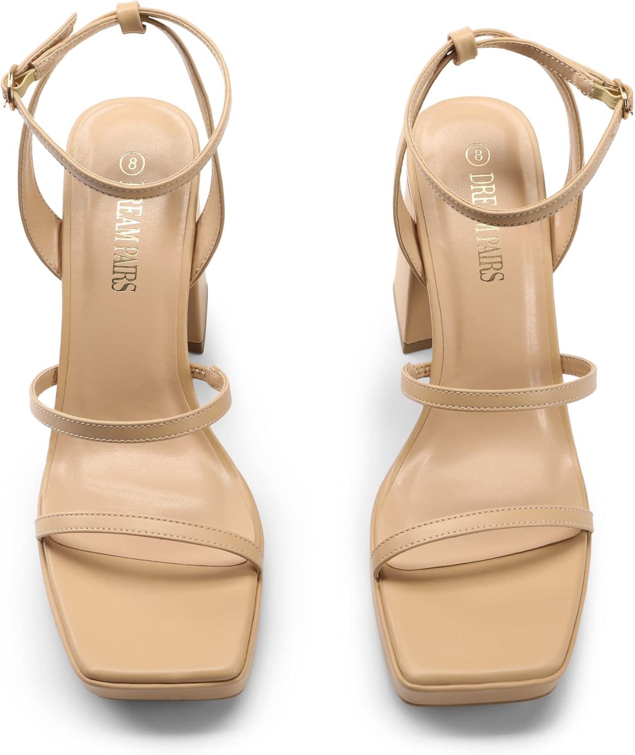 DREAM PAIRS Women’s Platform Strappy Heels Open Toe Ankle Strap Square Party Sandals Y2K Dress Shoes(Nude)