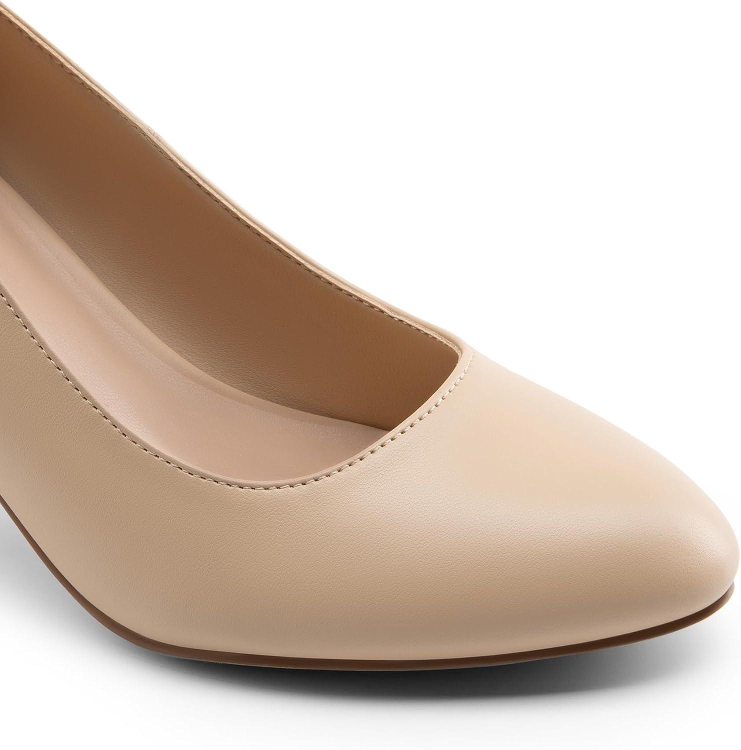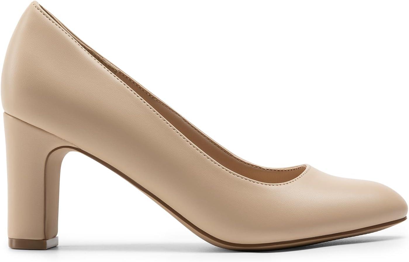 DREAM PAIRS Women’s Block Heels Closed Toe High Chunky Rounded Toe Pumps Comfortable Slip On Work Shoes(Nude)