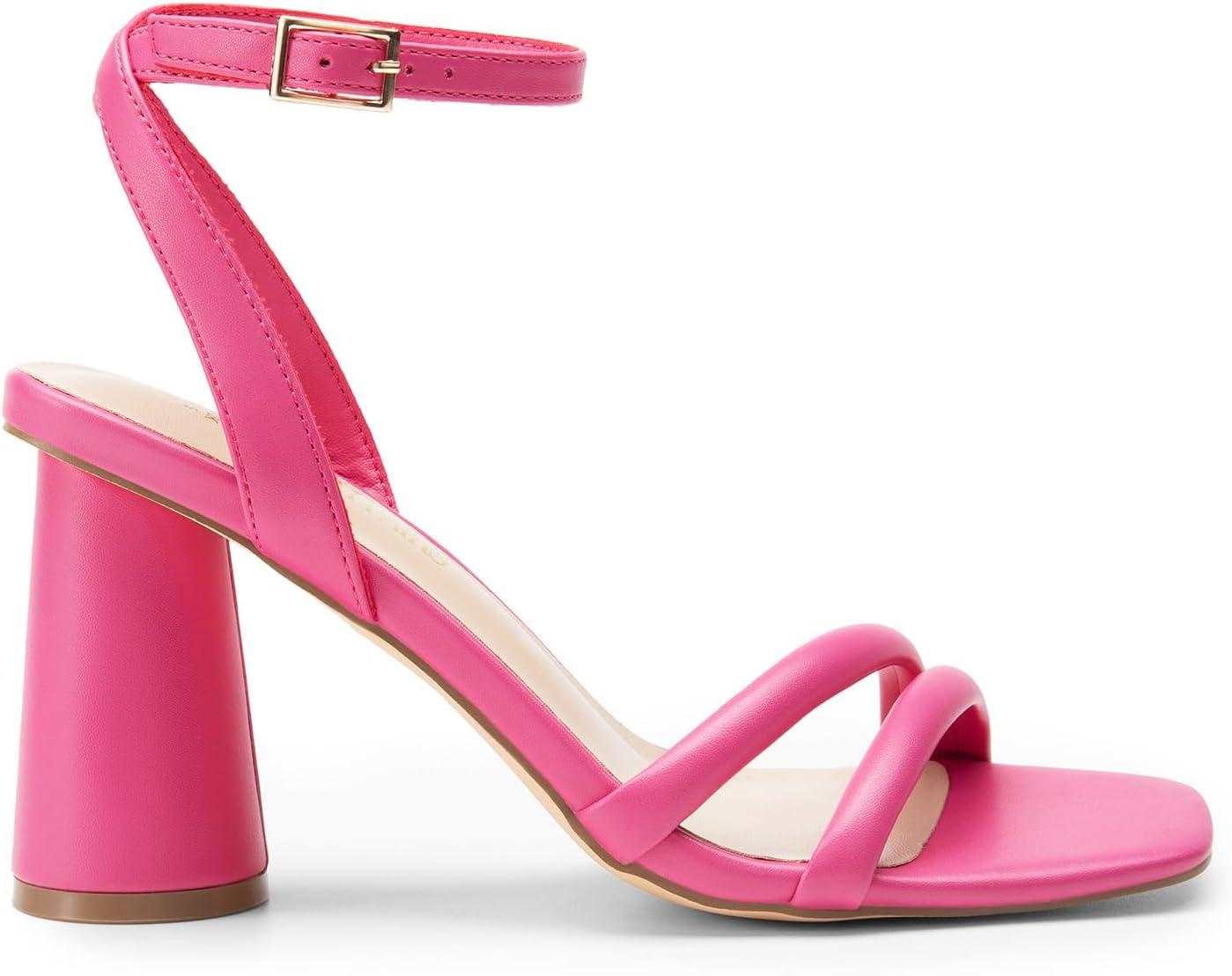DREAM PAIRS Women’s Strappy Round Heels Open Square Toe Ankle Strap Party Sandals Dress Shoes(Hot Pink-pu)