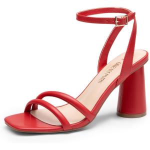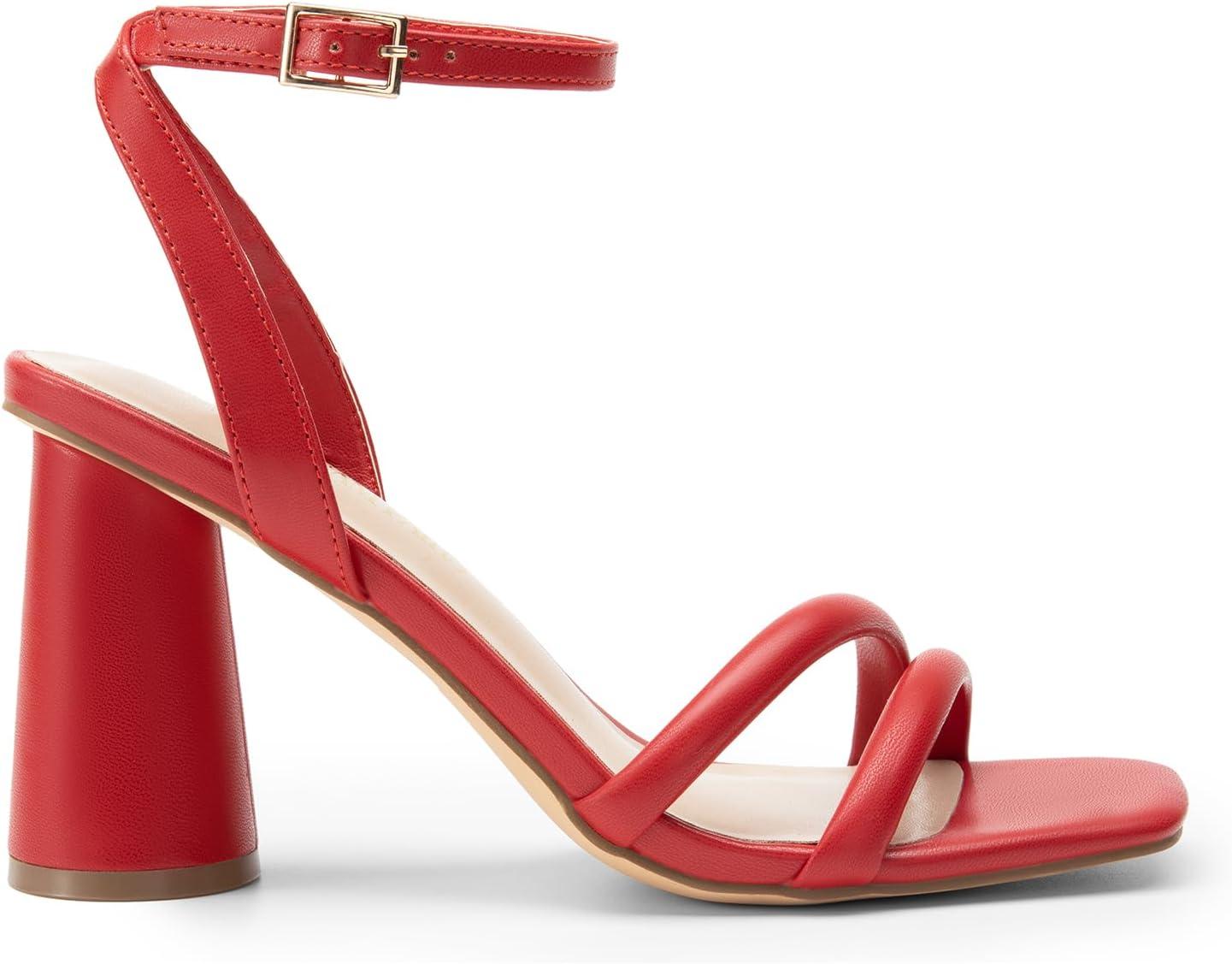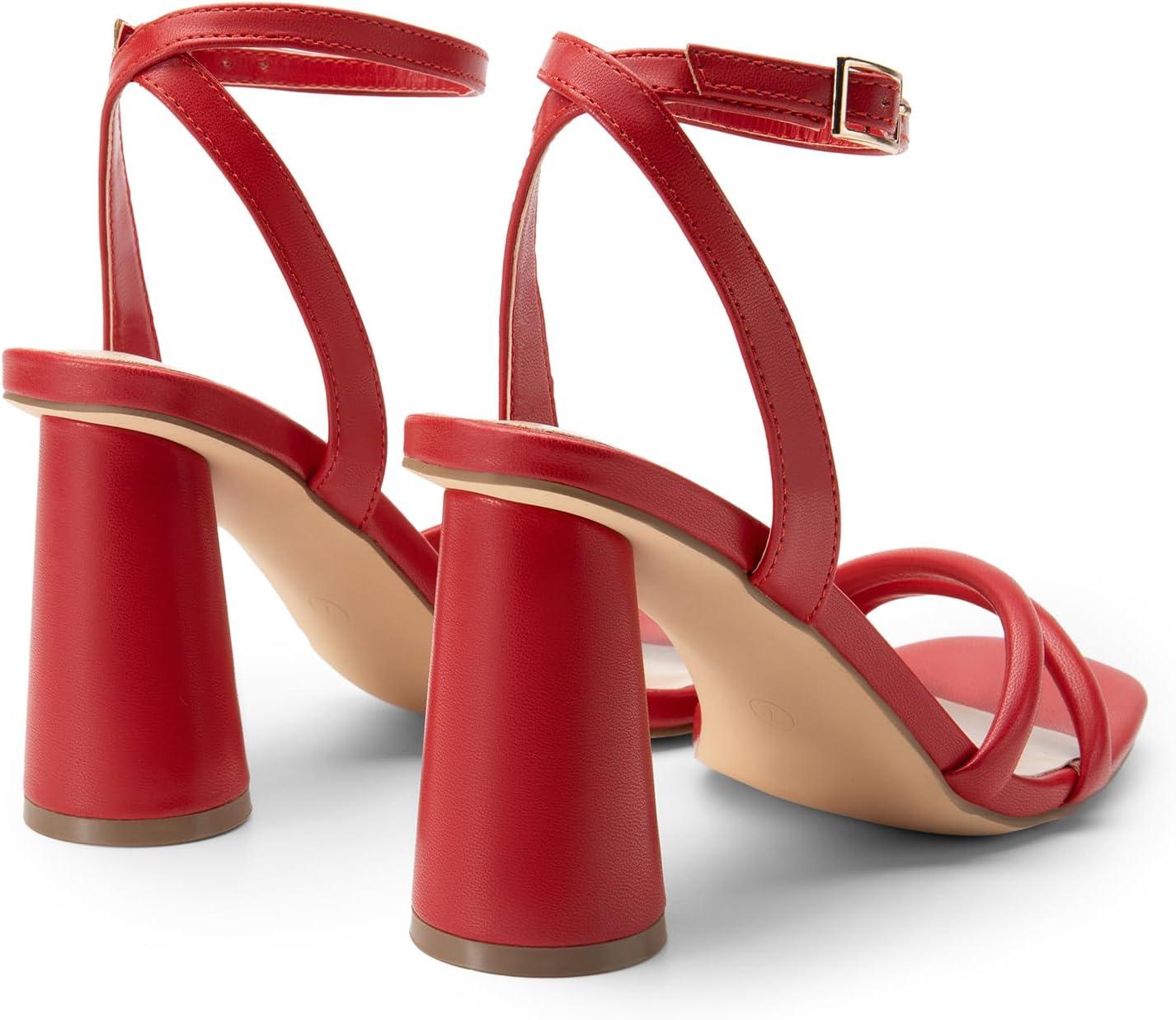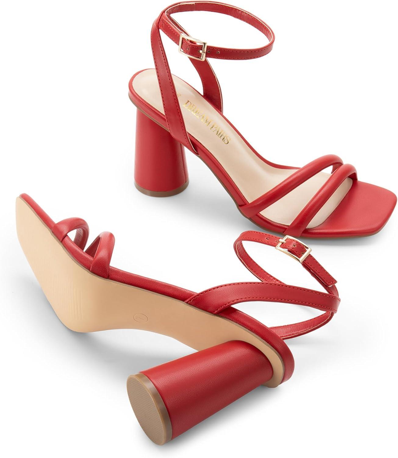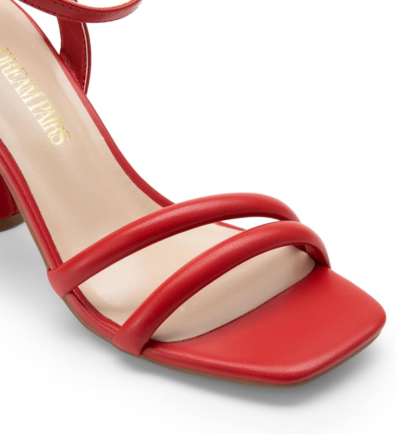 DREAM PAIRS Women’s Strappy Round Heels Open Square Toe Ankle Strap Party Sandals Dress Shoes(Red-pu)