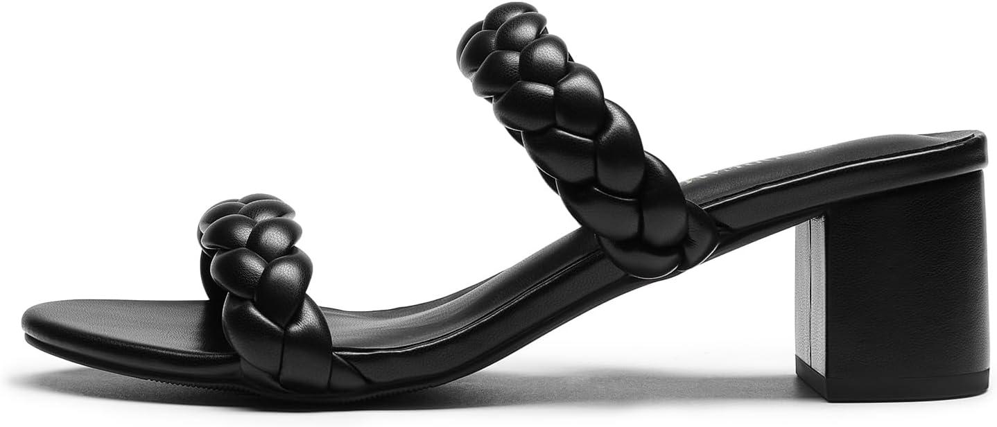 DREAM PAIRS Women’s Two Braided Strap Low Heels for Women Open Toe Block Chunky Heels Sandals Holiday Party Wedding Dress Pumps Shoes(Black)