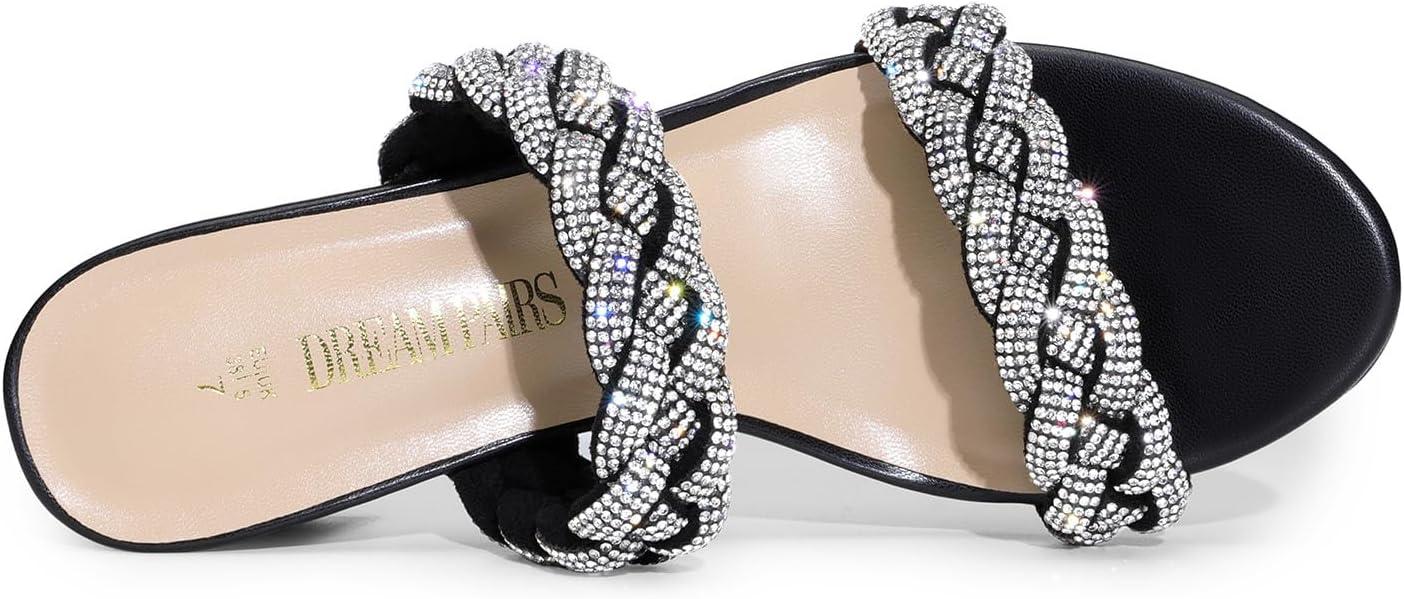 DREAM PAIRS Women’s Two Braided Strap Low Heels for Women Open Toe Block Chunky Heels Sandals Holiday Party Wedding Dress Pumps Shoes(Black-rhinestone)