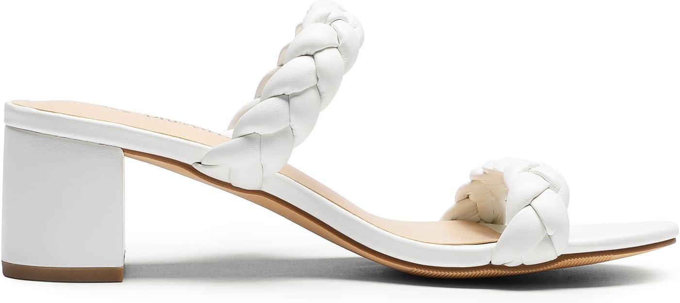 DREAM PAIRS Women’s Two Braided Strap Low Heels for Women Open Toe Block Chunky Heels Sandals Holiday Party Wedding Dress Pumps Shoes(White)