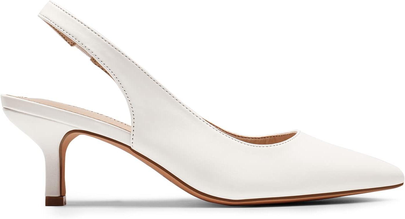 DREAM PAIRS Women’s Closed Toe Kitten Heels Pointed Toe Slingback Low Heels Dress Bridal Wedding Pumps Shoes(White-pu)