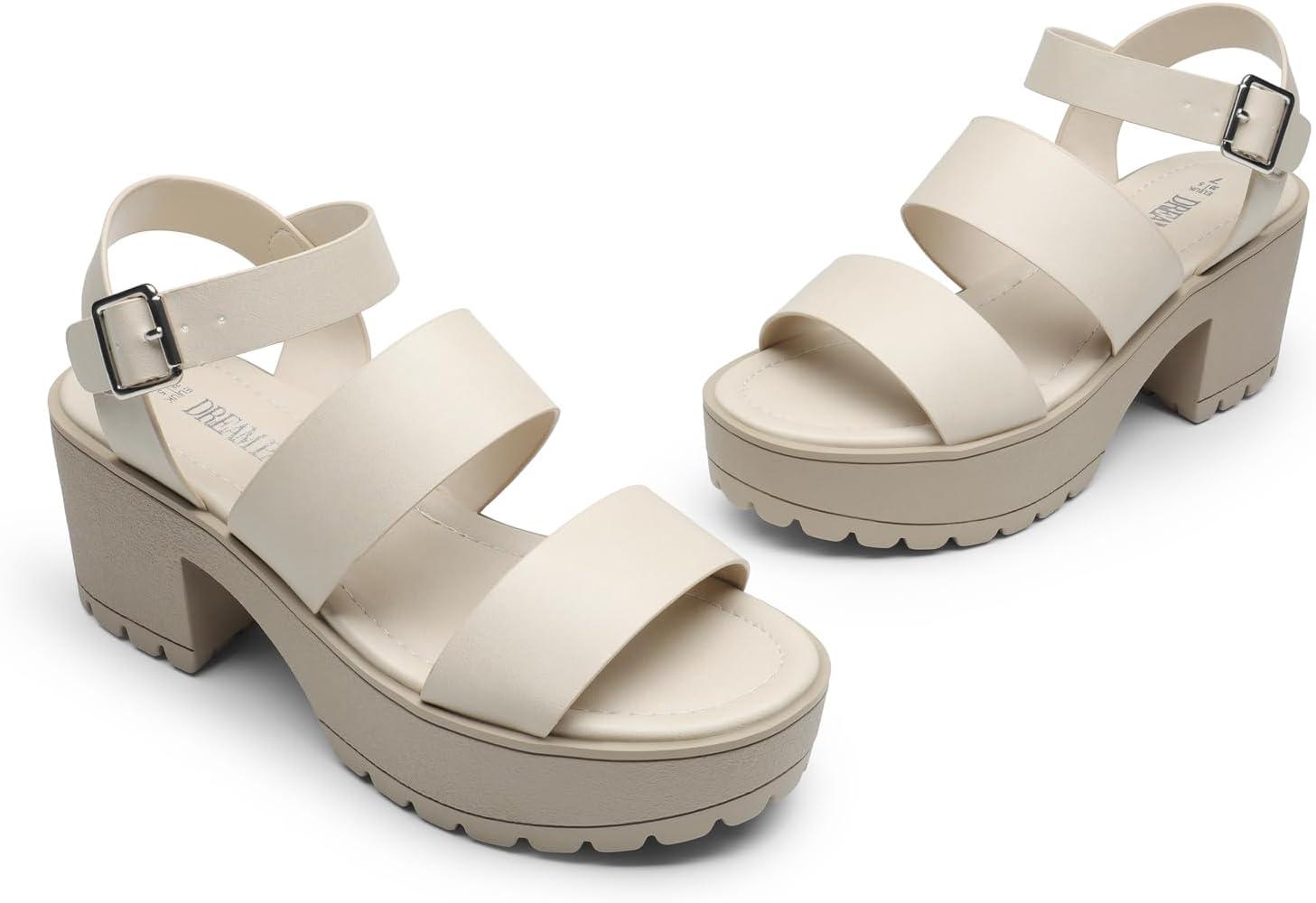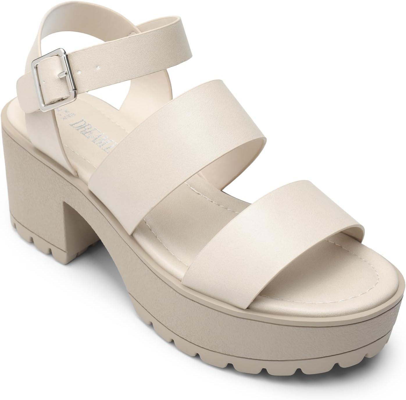DREAM PAIRS Platform Heels for Women Lightweight Chunky Open Toe Stylish Comfortable Fisherman Sandals with Adjustable Ankle Strap(Ivory)