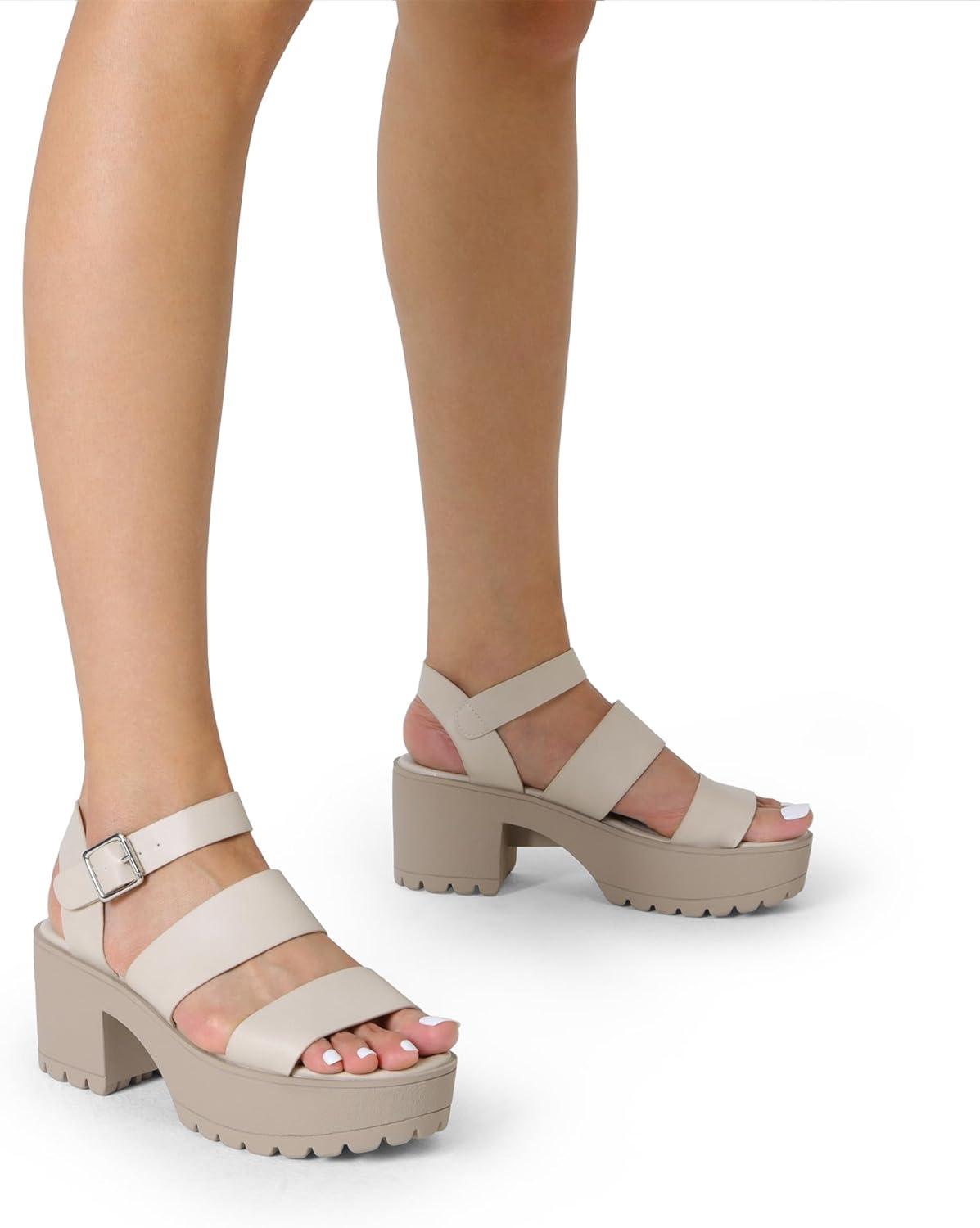 DREAM PAIRS Platform Heels for Women Lightweight Chunky Open Toe Stylish Comfortable Fisherman Sandals with Adjustable Ankle Strap(Beige)