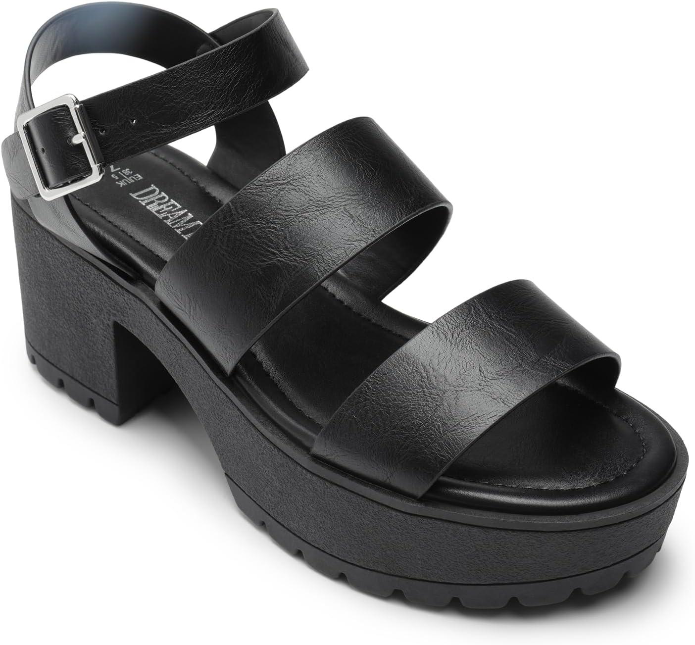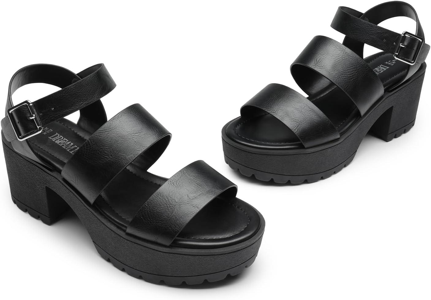 DREAM PAIRS Platform Heels for Women Lightweight Chunky Open Toe Stylish Comfortable Fisherman Sandals with Adjustable Ankle Strap(Black)