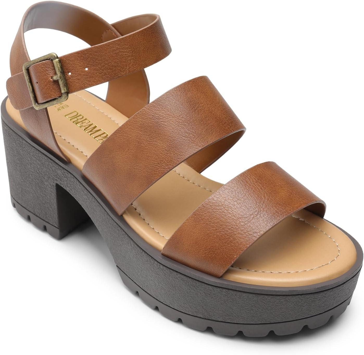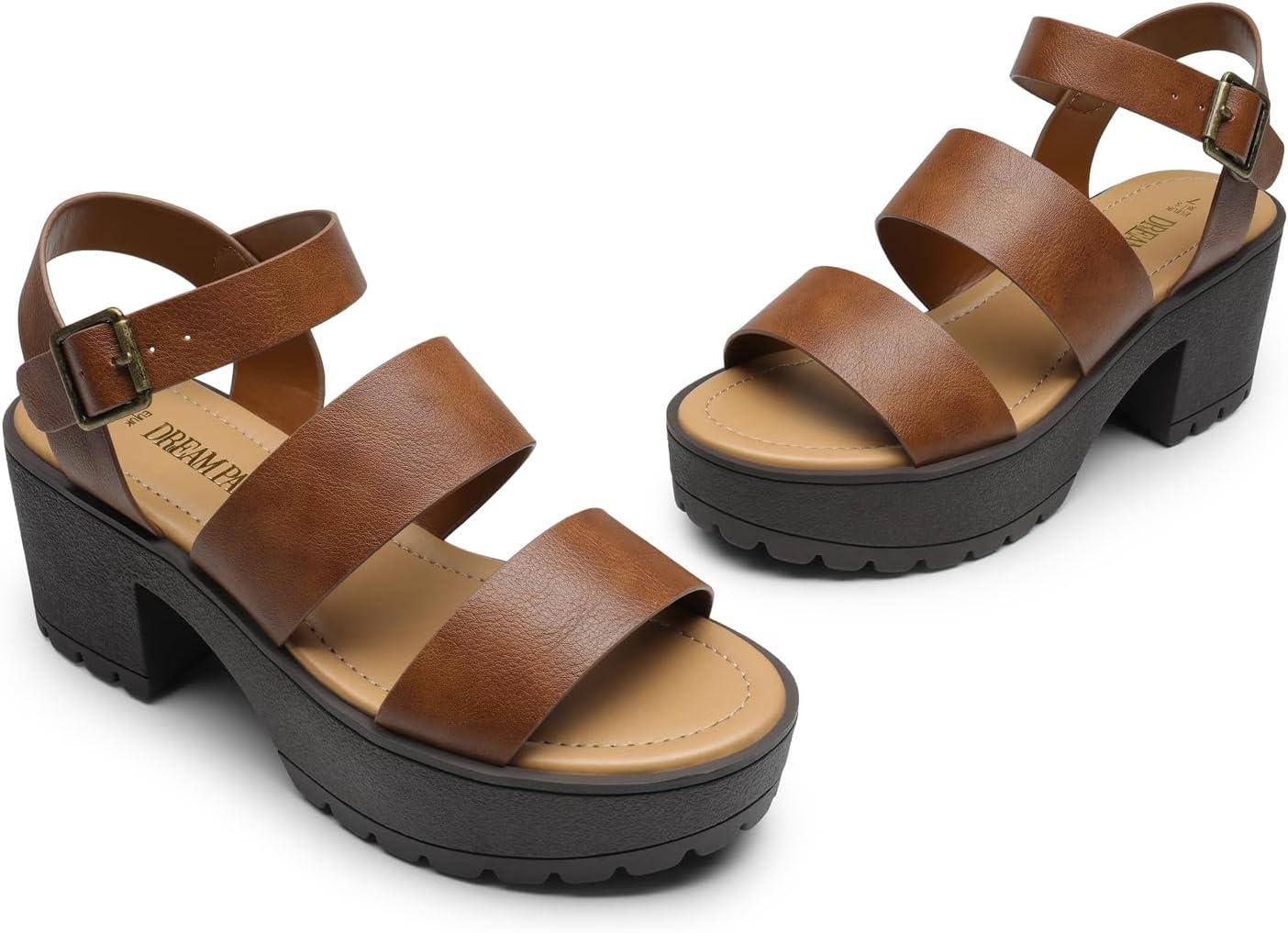 DREAM PAIRS Platform Heels for Women Lightweight Chunky Open Toe Stylish Comfortable Fisherman Sandals with Adjustable Ankle Strap(Brown)