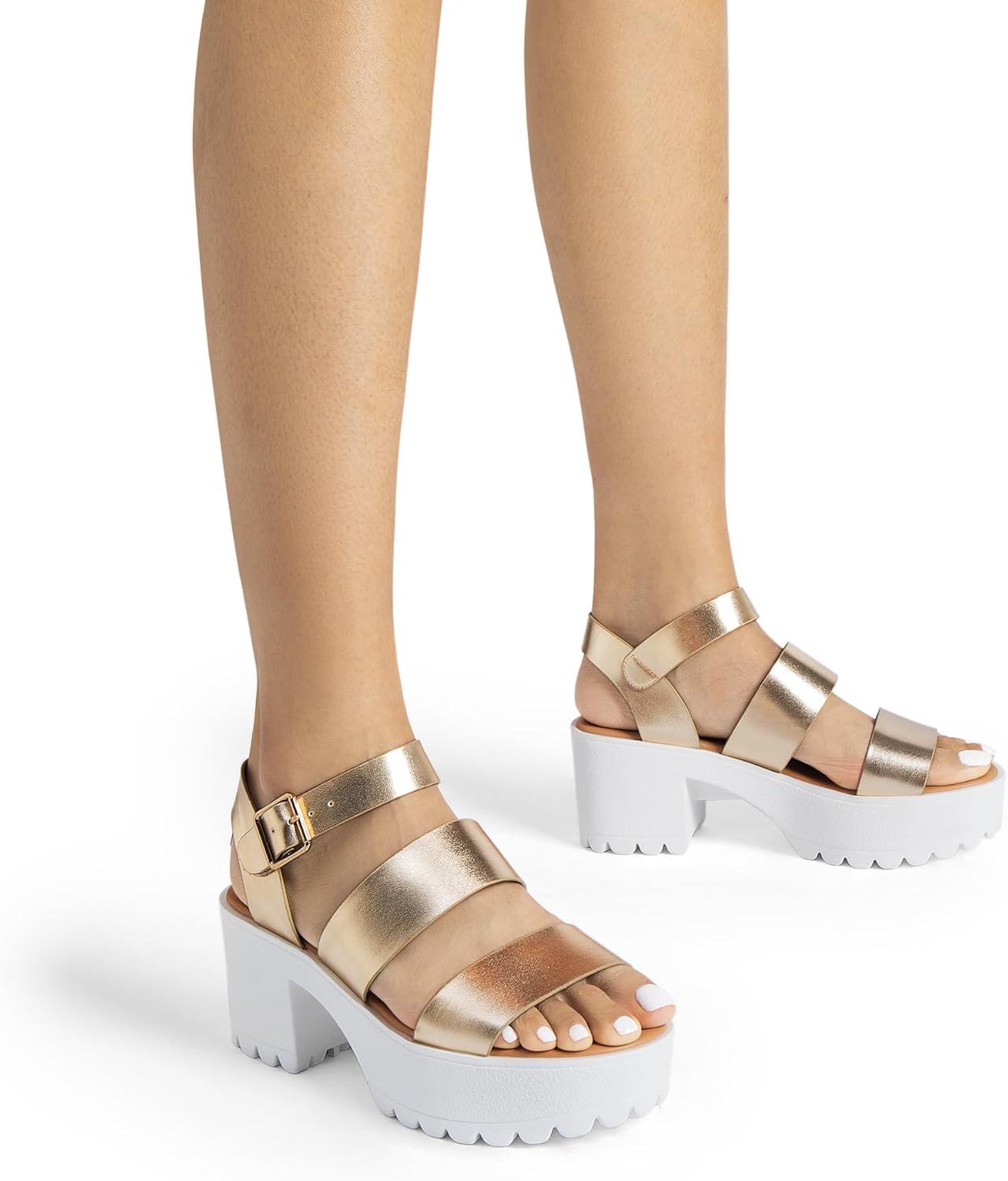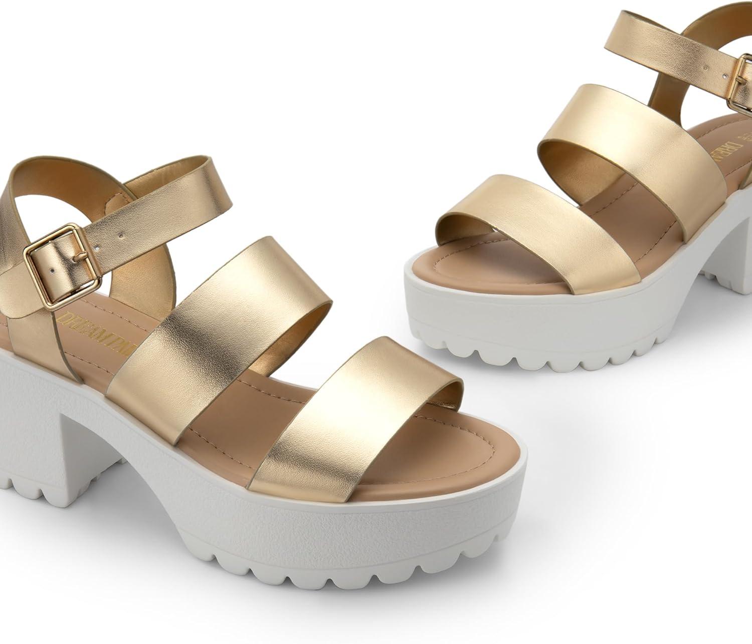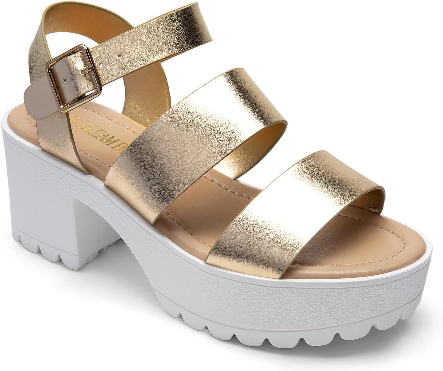 DREAM PAIRS Platform Heels for Women Lightweight Chunky Open Toe Stylish Comfortable Fisherman Sandals with Adjustable Ankle Strap(Gold)