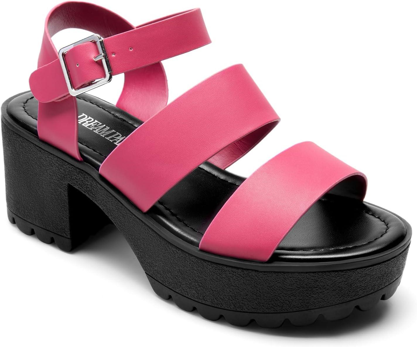 DREAM PAIRS Platform Heels for Women Lightweight Chunky Open Toe Stylish Comfortable Fisherman Sandals with Adjustable Ankle Strap(Hot Pink)