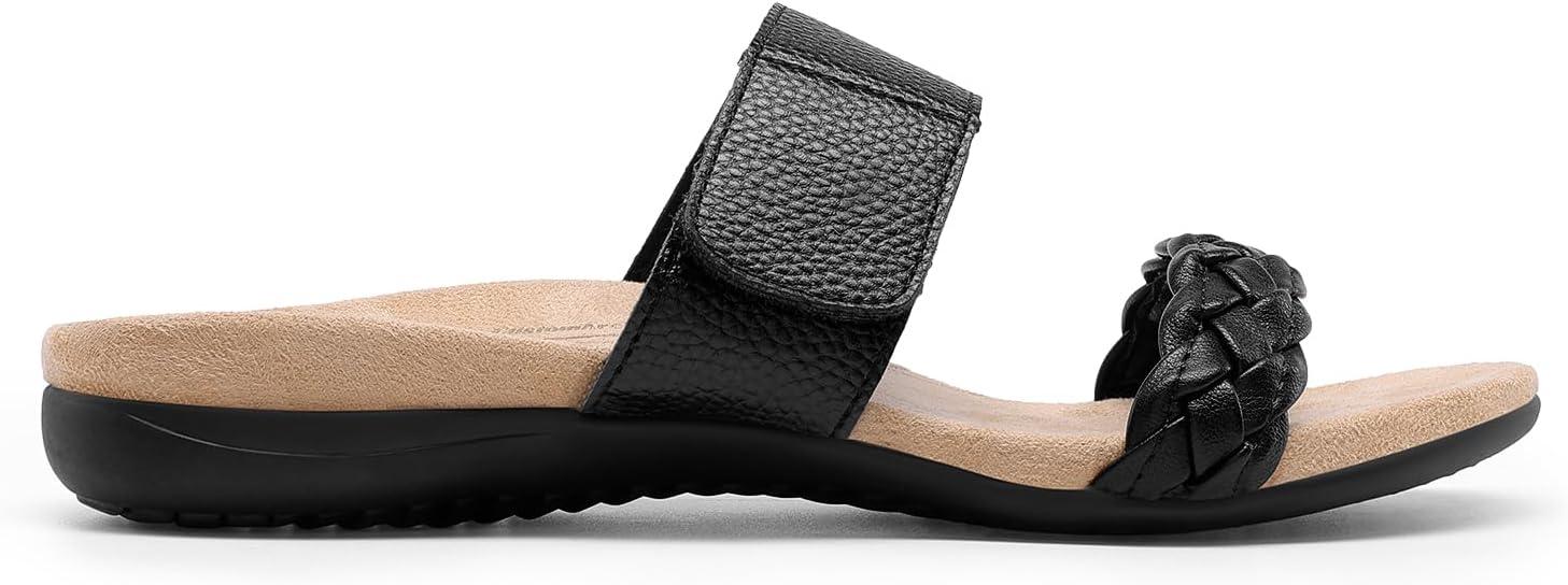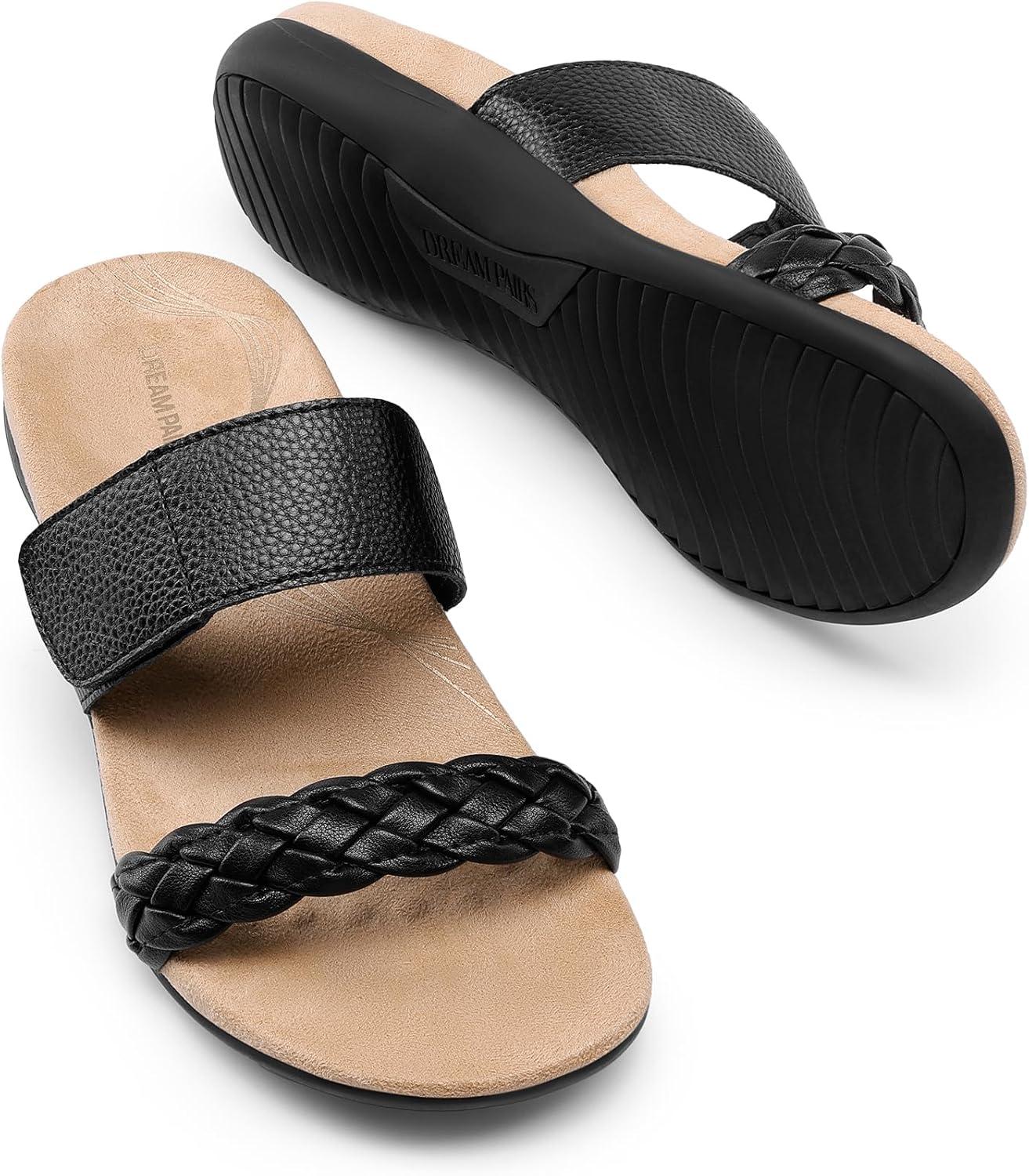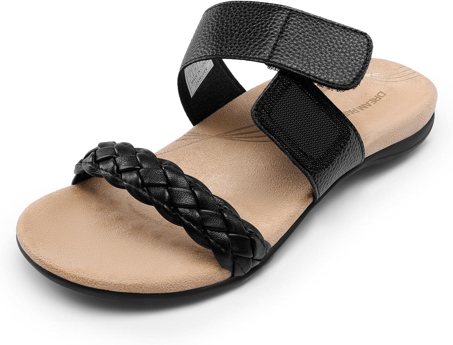 DREAM PAIRS Women’s Arch Support Slides Flat Sandals Soft Cushion Slippers With Adjustable Straps(Black)