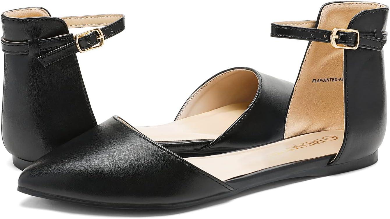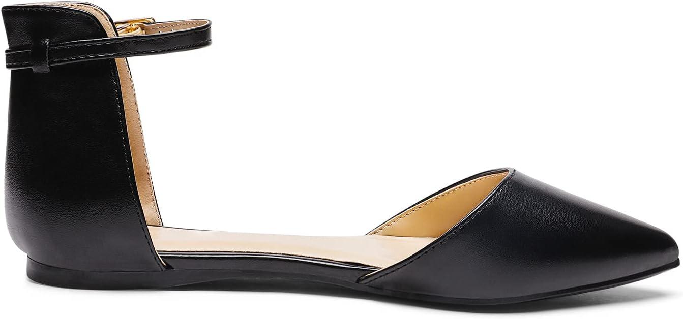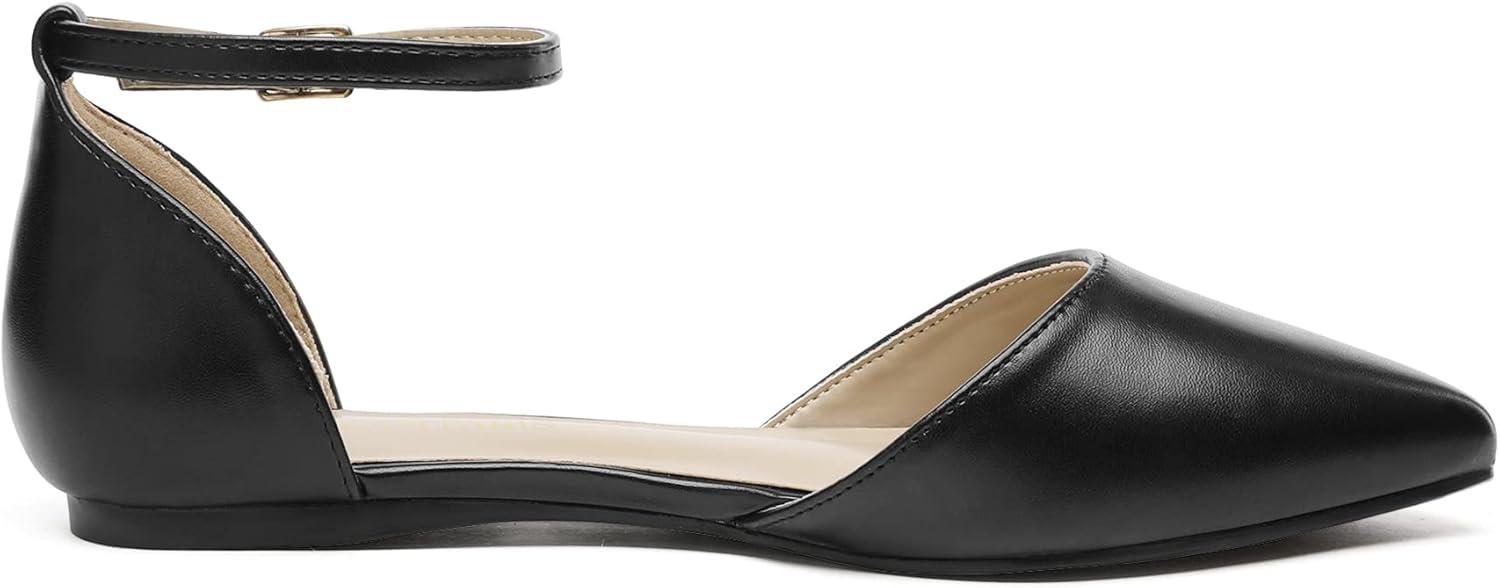 DREAM PAIRS Flapointed Women’s Casual D’Orsay Pointed Plain Ballet Comfort Soft Slip On Flats Shoes(Ankle-black-pu)