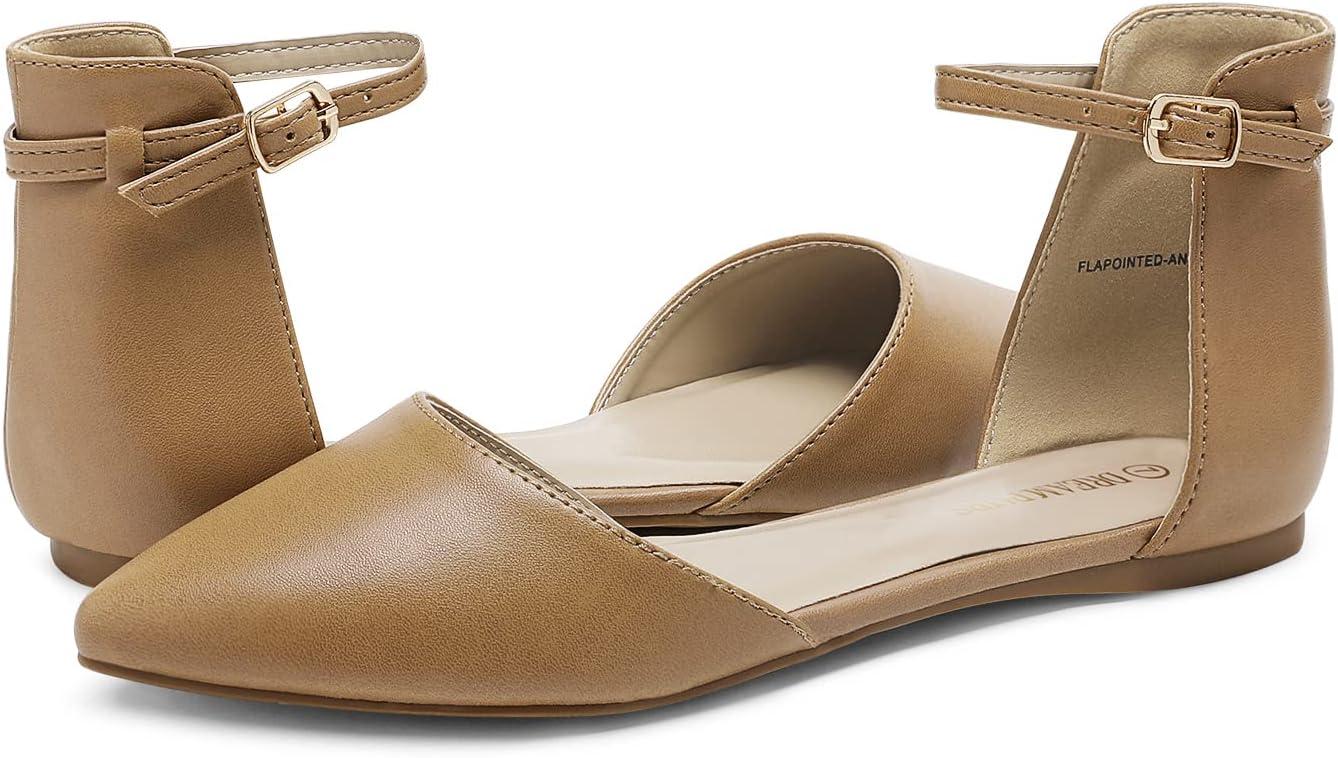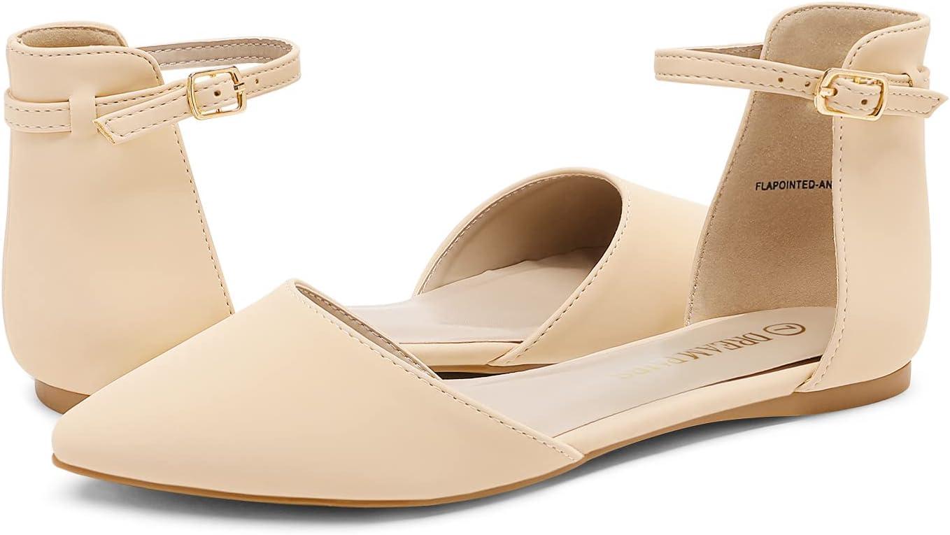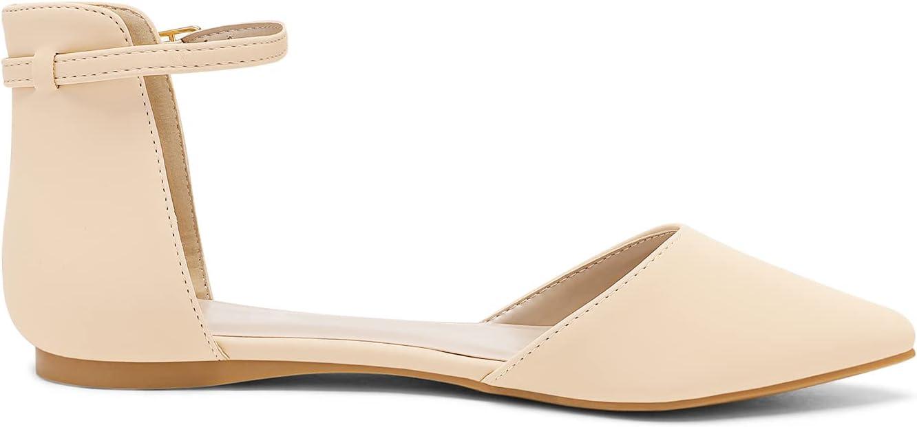 DREAM PAIRS Flapointed Women’s Casual D’Orsay Pointed Plain Ballet Comfort Soft Slip On Flats Shoes(Nude/Pu)