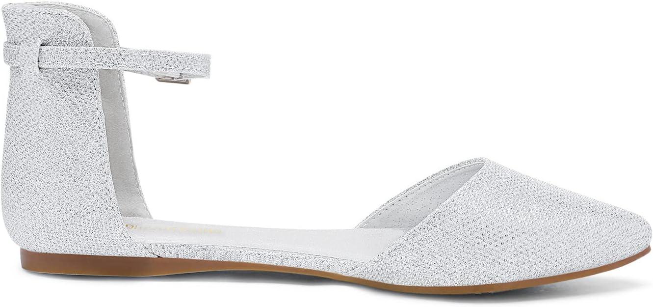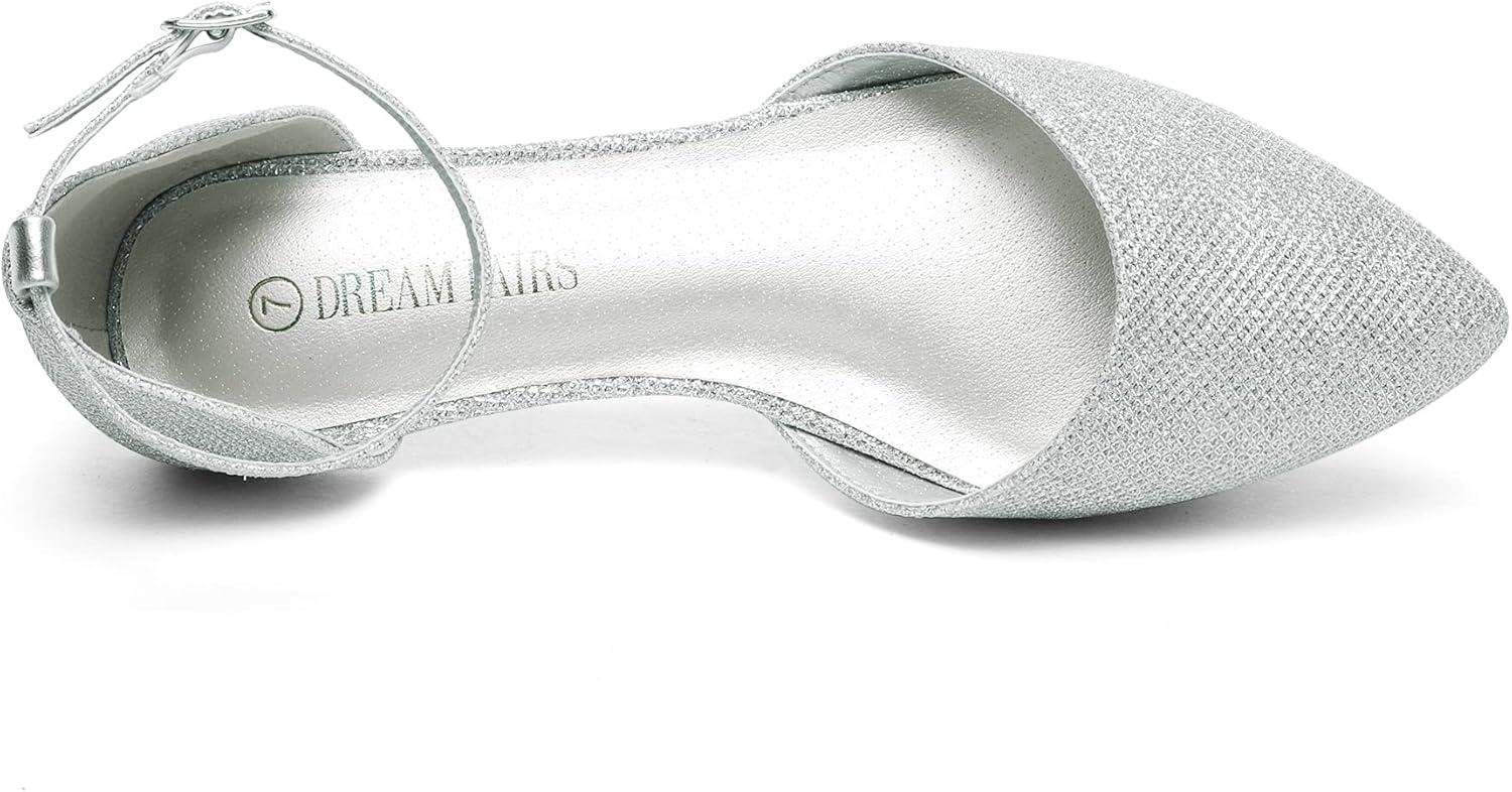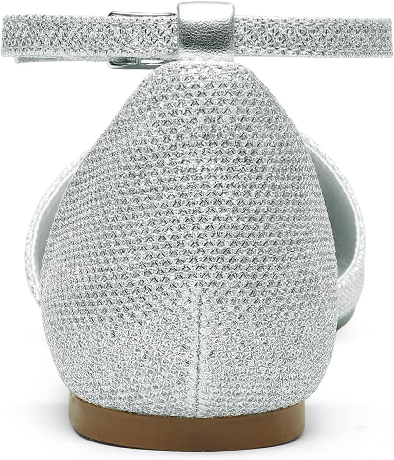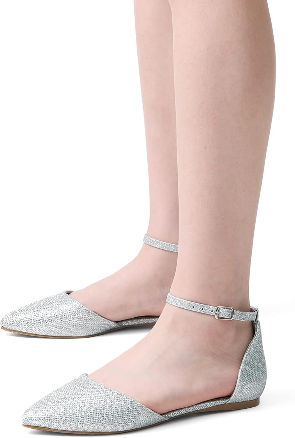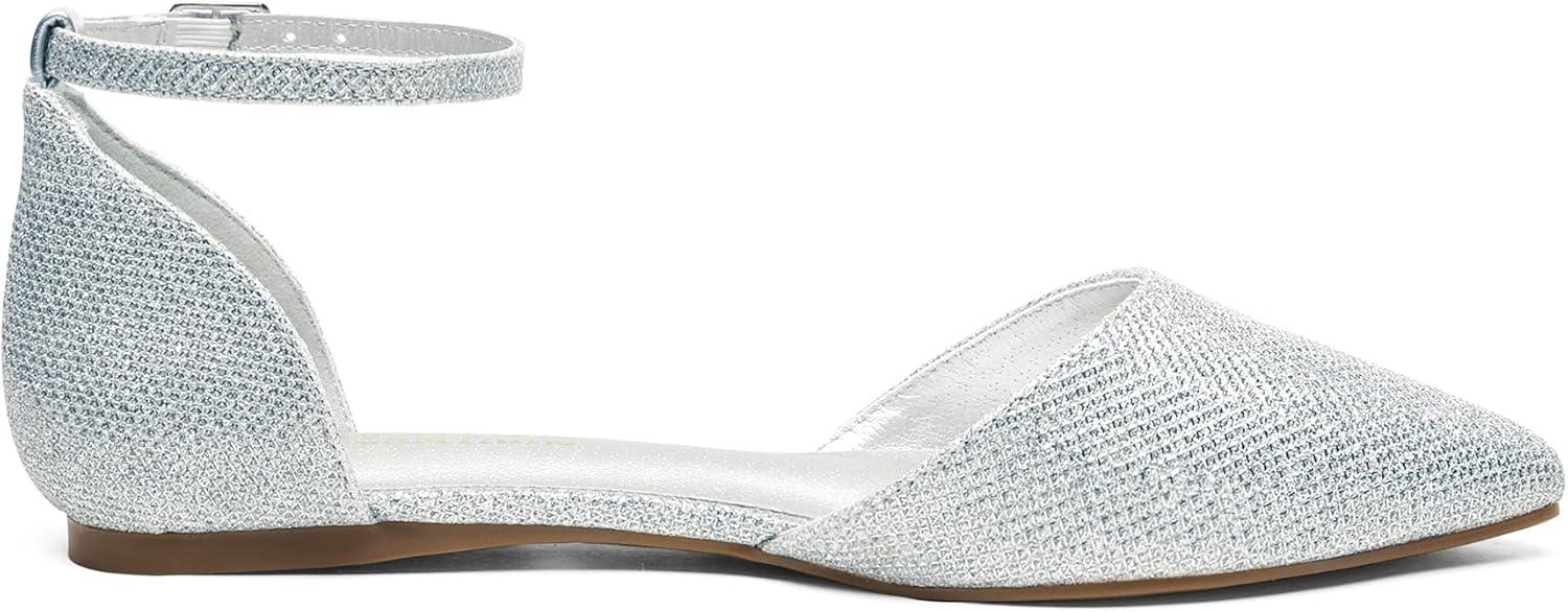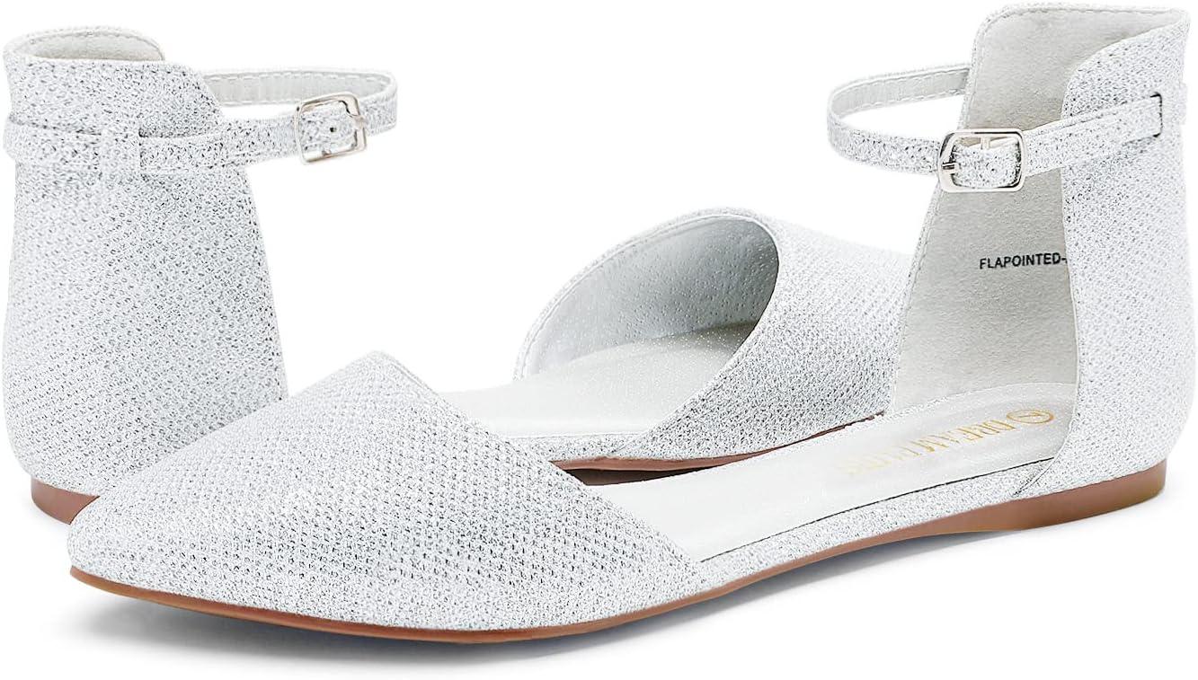 DREAM PAIRS Flapointed Women’s Casual D’Orsay Pointed Plain Ballet Comfort Soft Slip On Flats Shoes(Silver/Glitter)