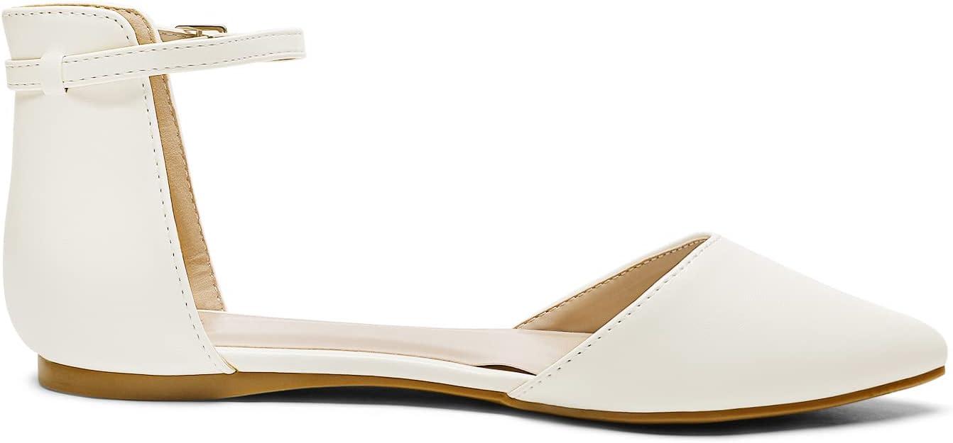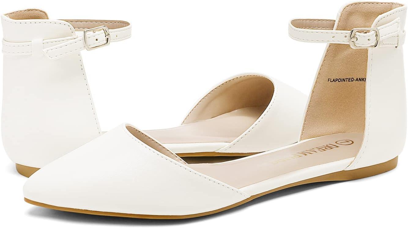 DREAM PAIRS Flapointed Women’s Casual D’Orsay Pointed Plain Ballet Comfort Soft Slip On Flats Shoes(All White)