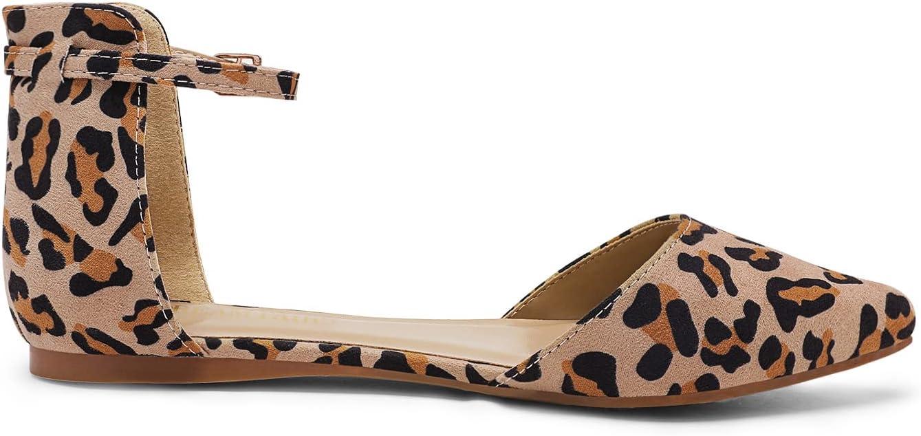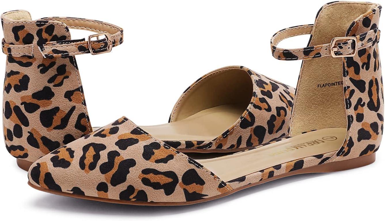 DREAM PAIRS Flapointed Women’s Casual D’Orsay Pointed Plain Ballet Comfort Soft Slip On Flats Shoes(Ankle-leopard)