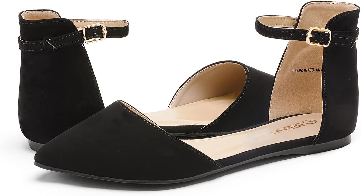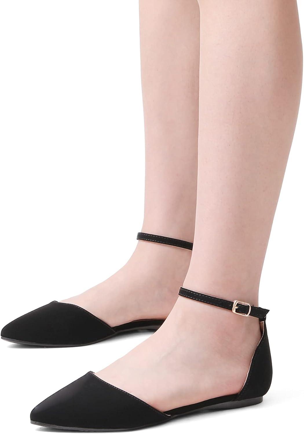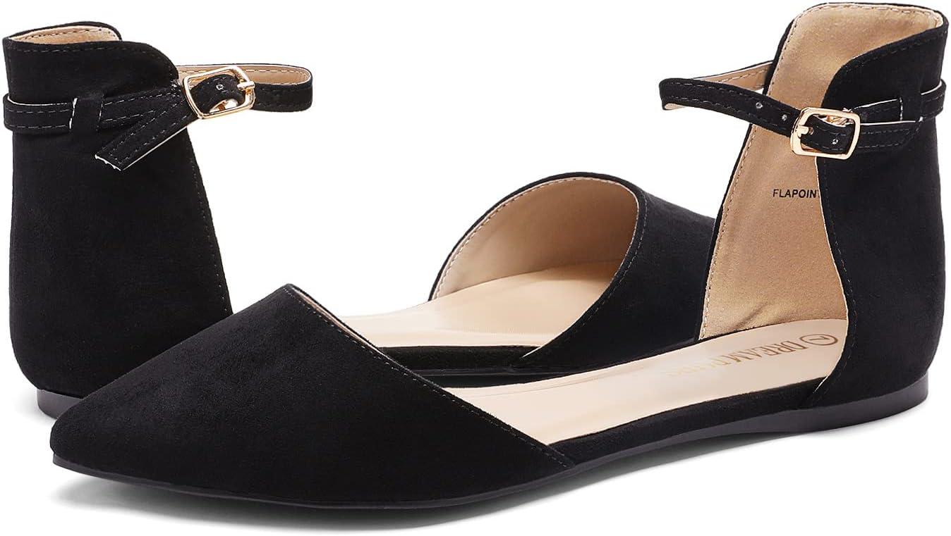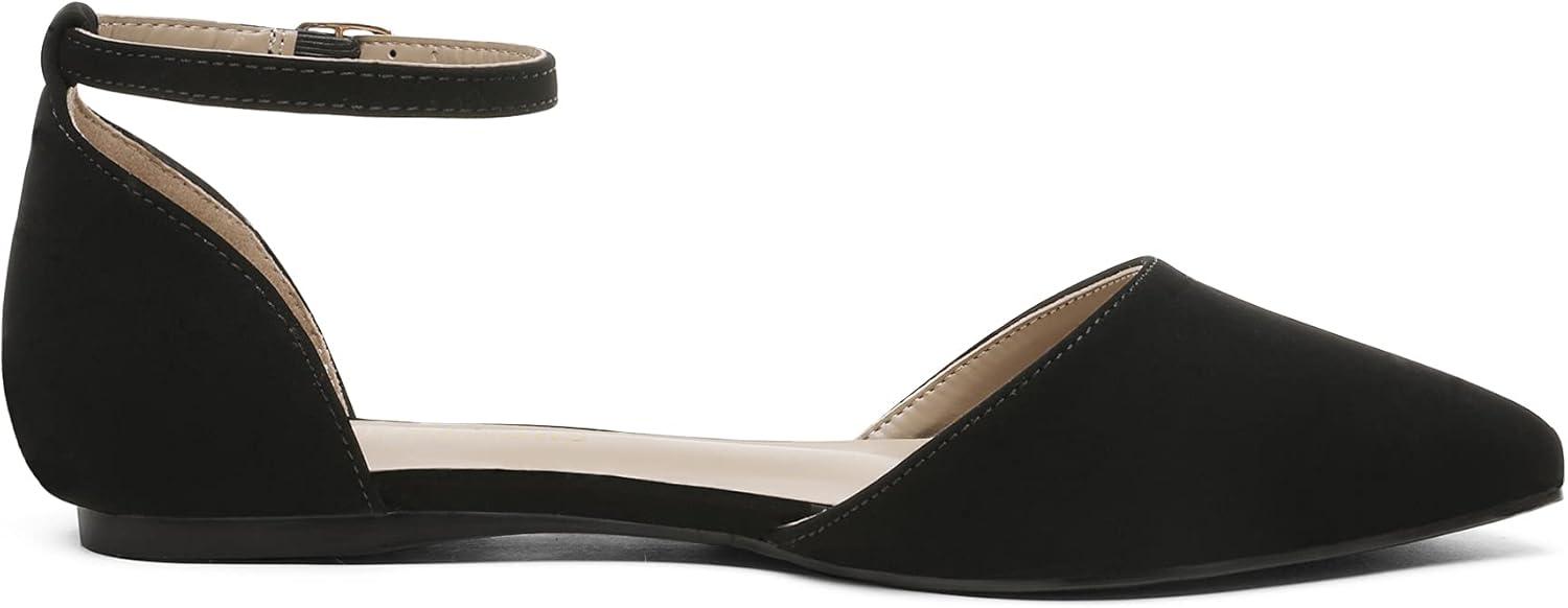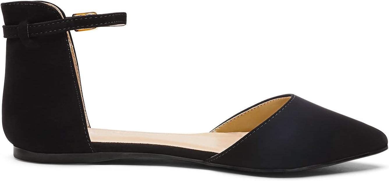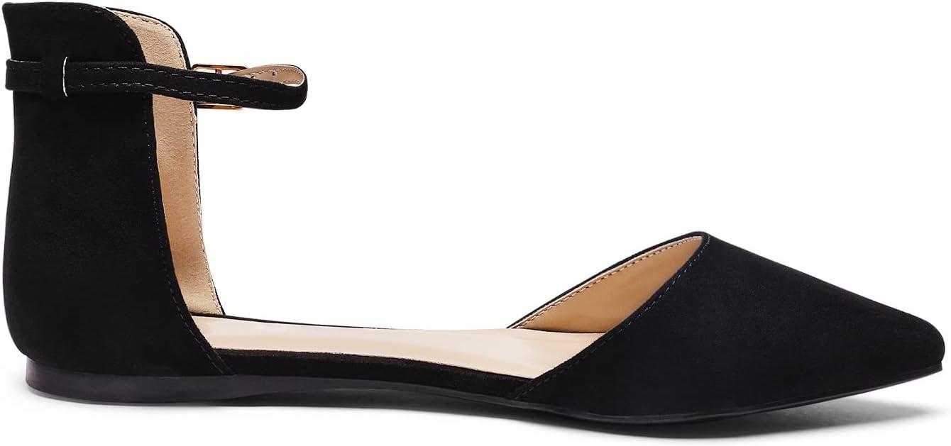 DREAM PAIRS Flapointed Women’s Casual D’Orsay Pointed Plain Ballet Comfort Soft Slip On Flats Shoes(Black/Nubuck)