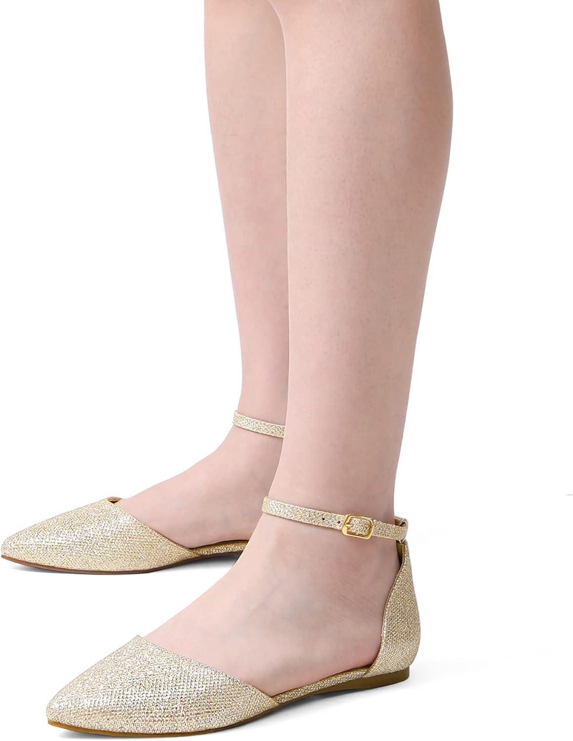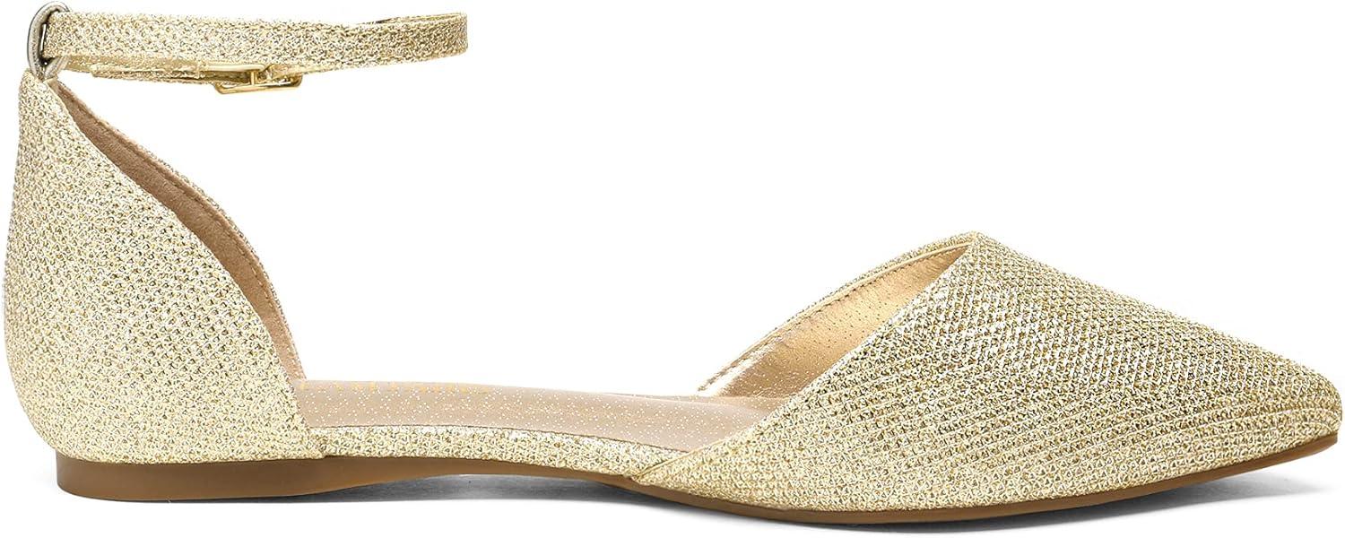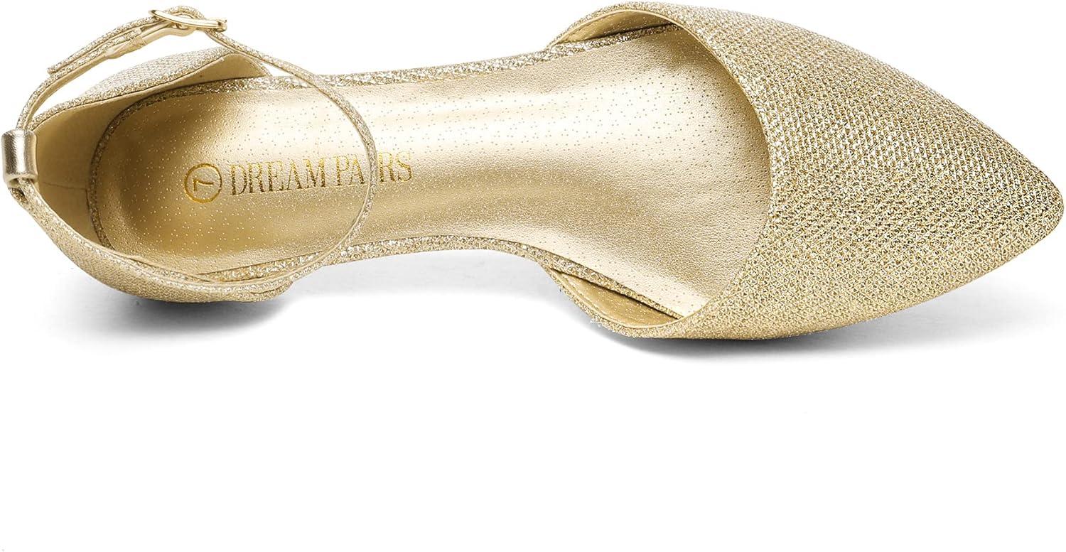 DREAM PAIRS Flapointed Women’s Casual D’Orsay Pointed Plain Ballet Comfort Soft Slip On Flats Shoes(Gold/Glitter)