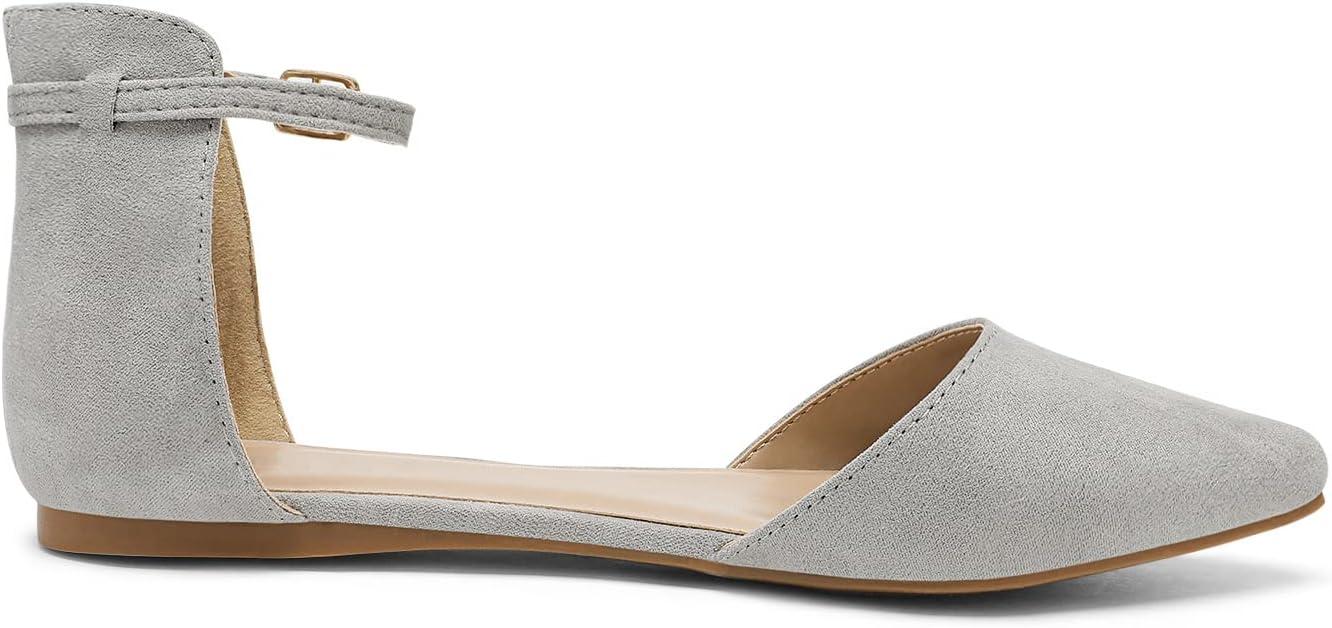 DREAM PAIRS Flapointed Women’s Casual D’Orsay Pointed Plain Ballet Comfort Soft Slip On Flats Shoes(Grey)