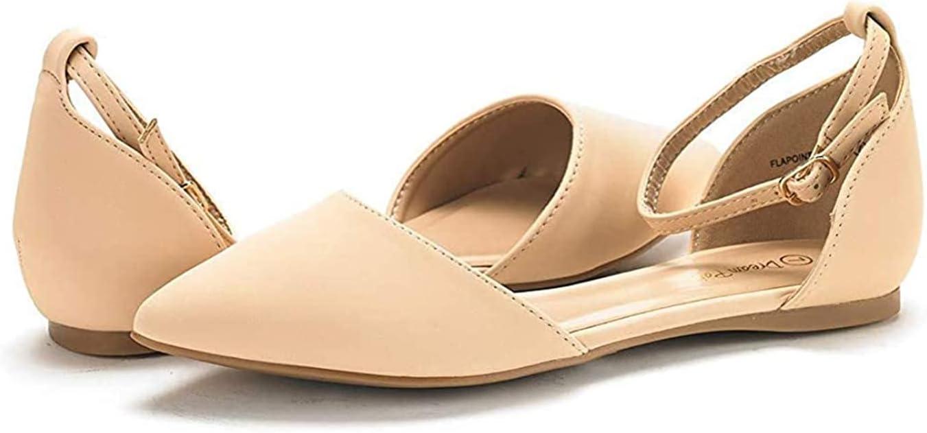 DREAM PAIRS Flapointed Women’s Casual D’Orsay Pointed Plain Ballet Comfort Soft Slip On Flats Shoes(All Nude)
