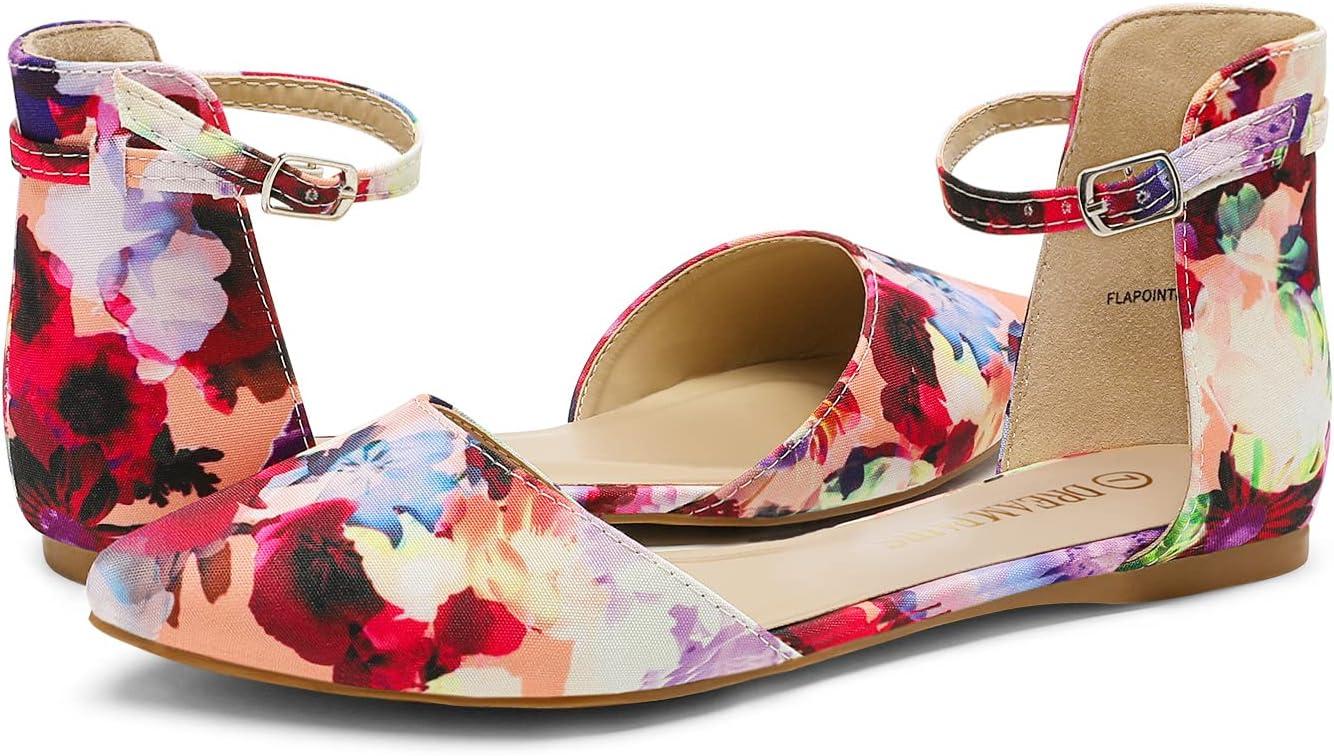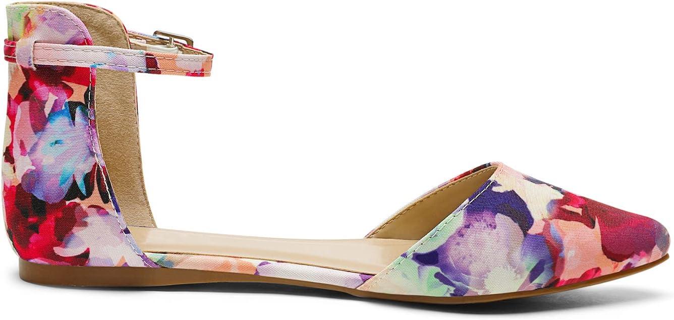 DREAM PAIRS Flapointed Women’s Casual D’Orsay Pointed Plain Ballet Comfort Soft Slip On Flats Shoes(Pink Floral)