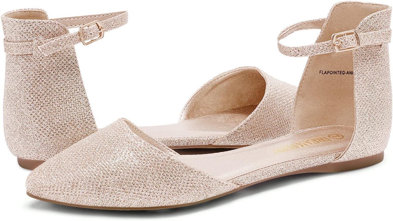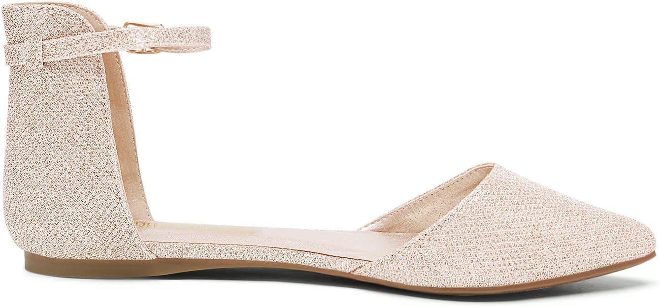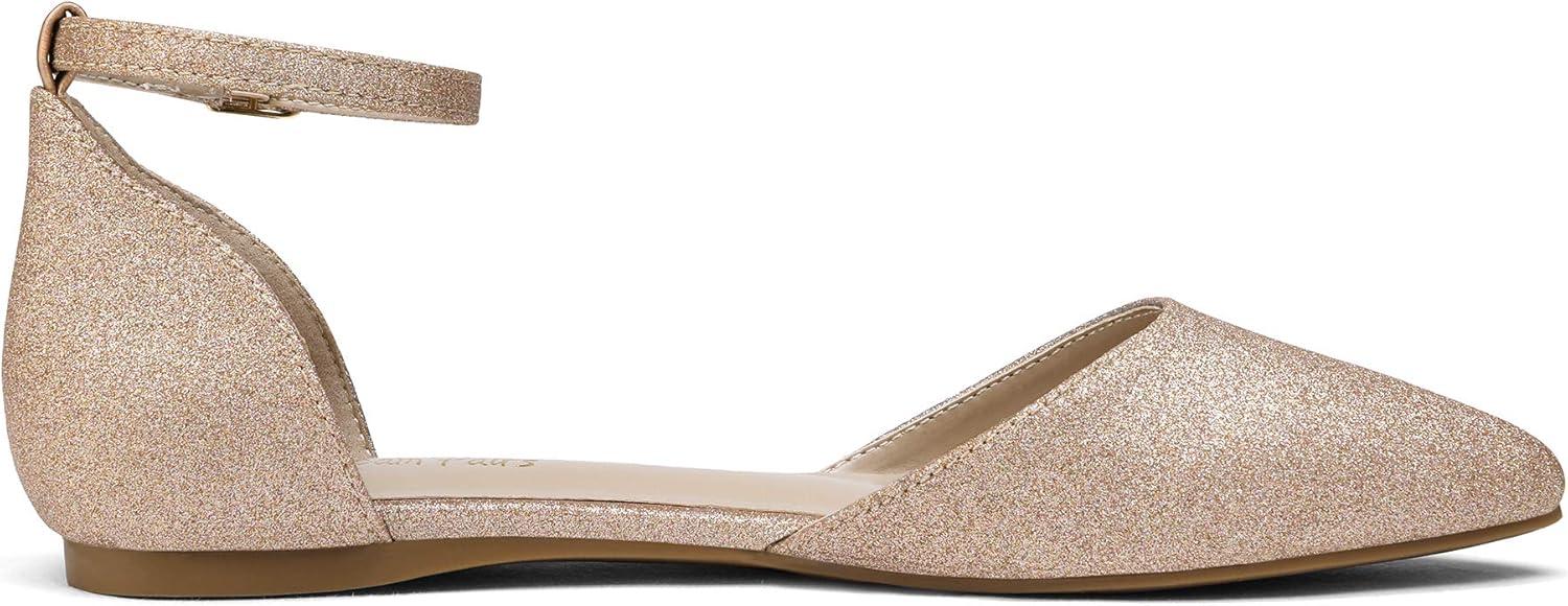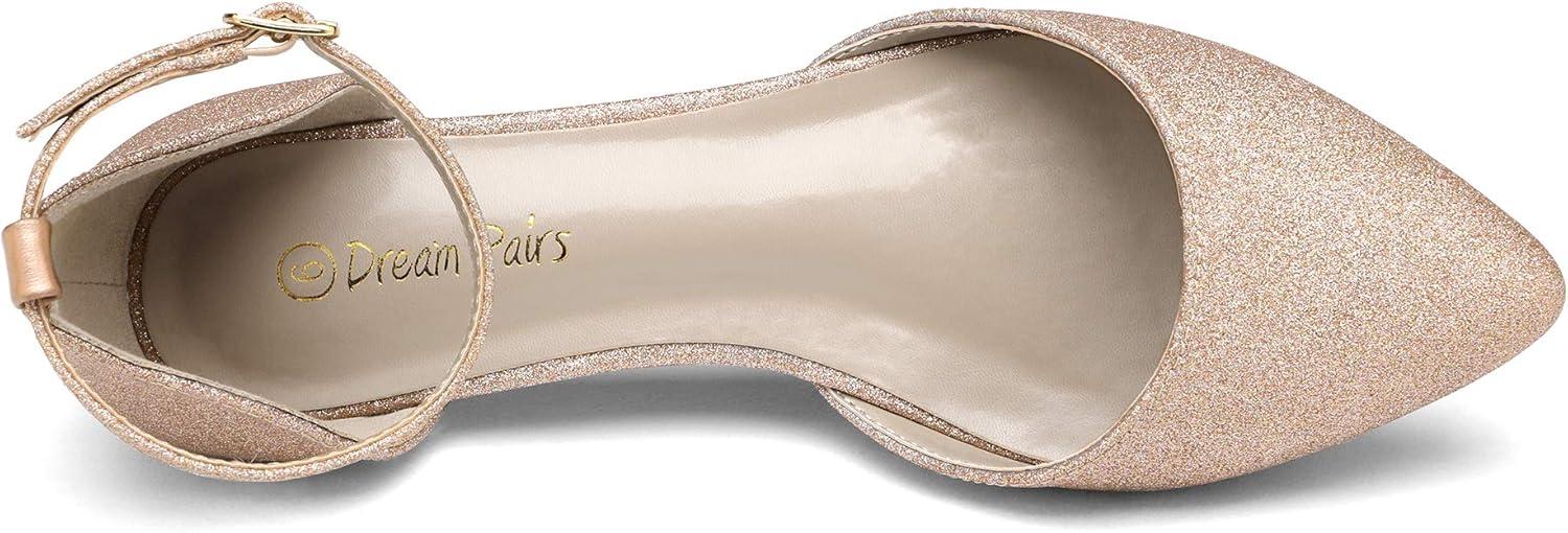 DREAM PAIRS Flapointed Women’s Casual D’Orsay Pointed Plain Ballet Comfort Soft Slip On Flats Shoes(Rose/Gold/Glitter)