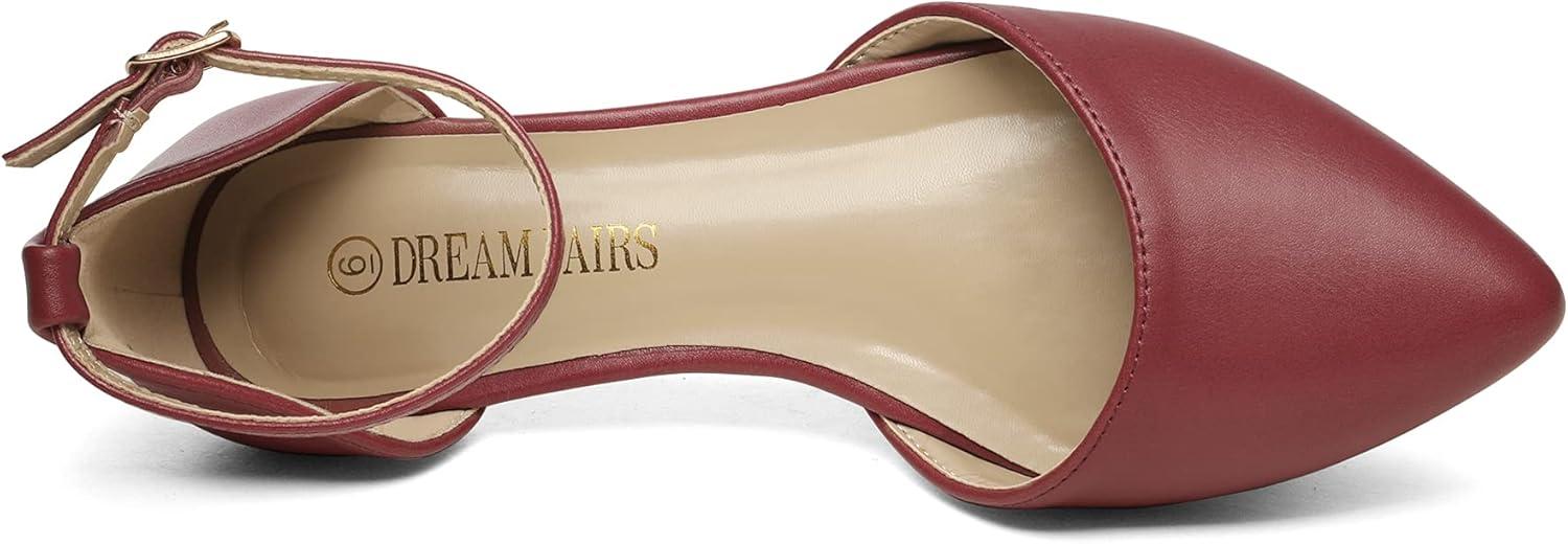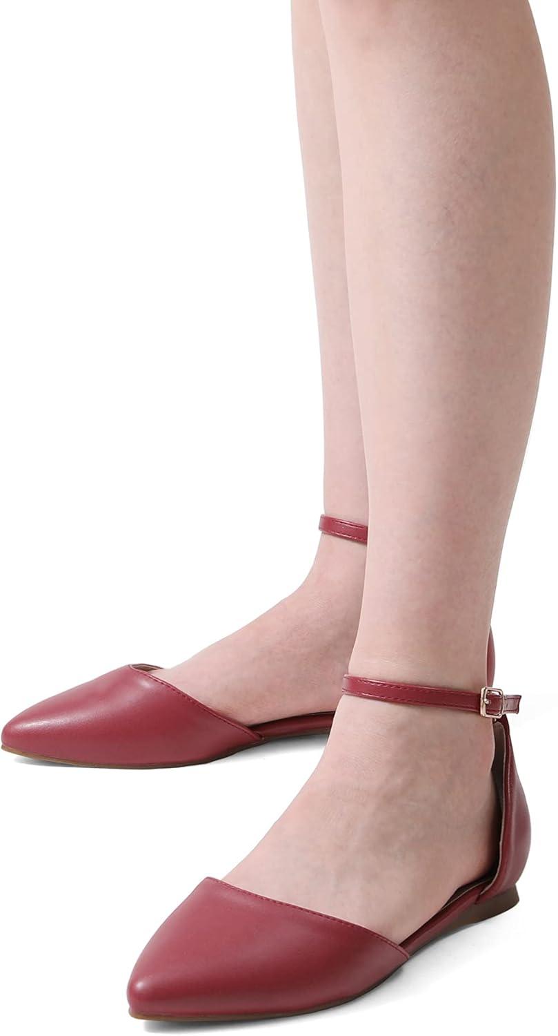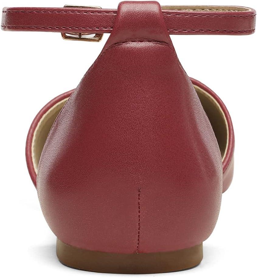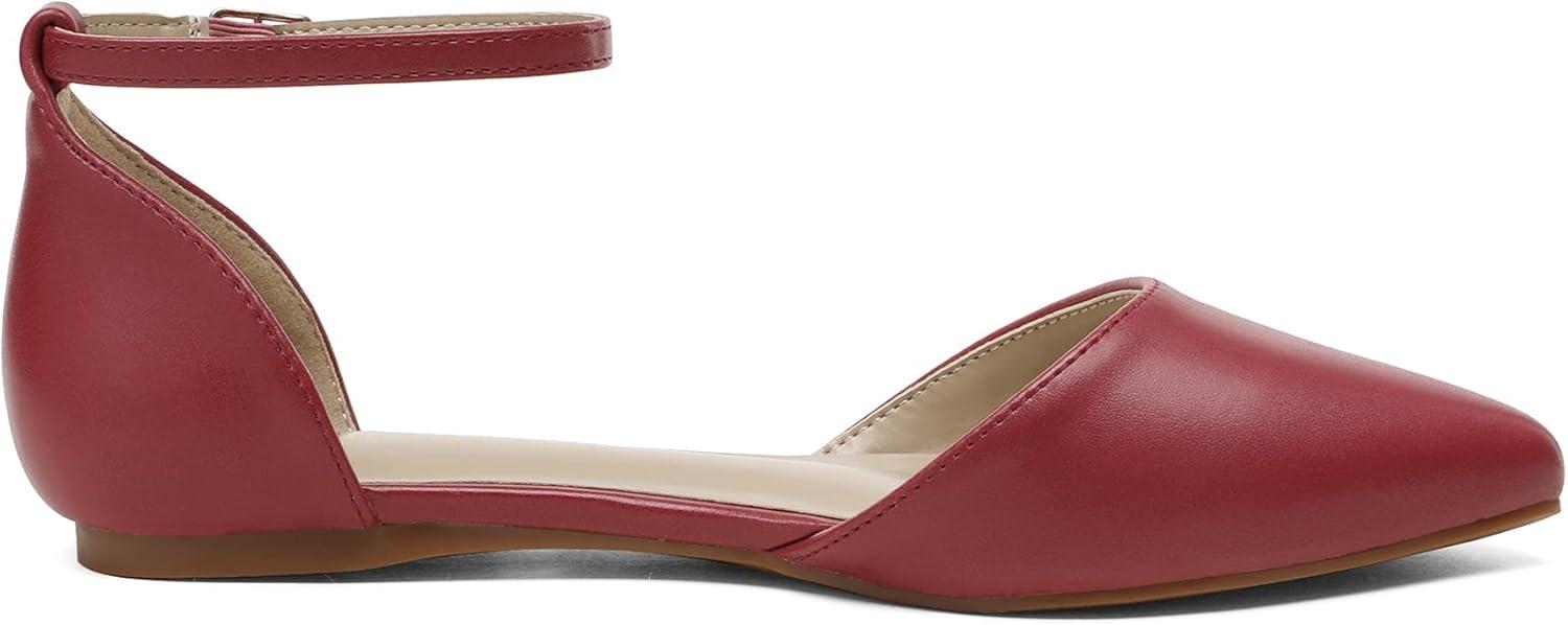 DREAM PAIRS Flapointed Women’s Casual D’Orsay Pointed Plain Ballet Comfort Soft Slip On Flats Shoes(Red/Pu)