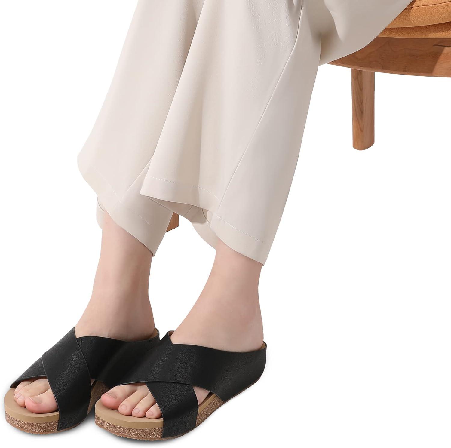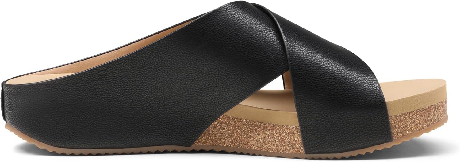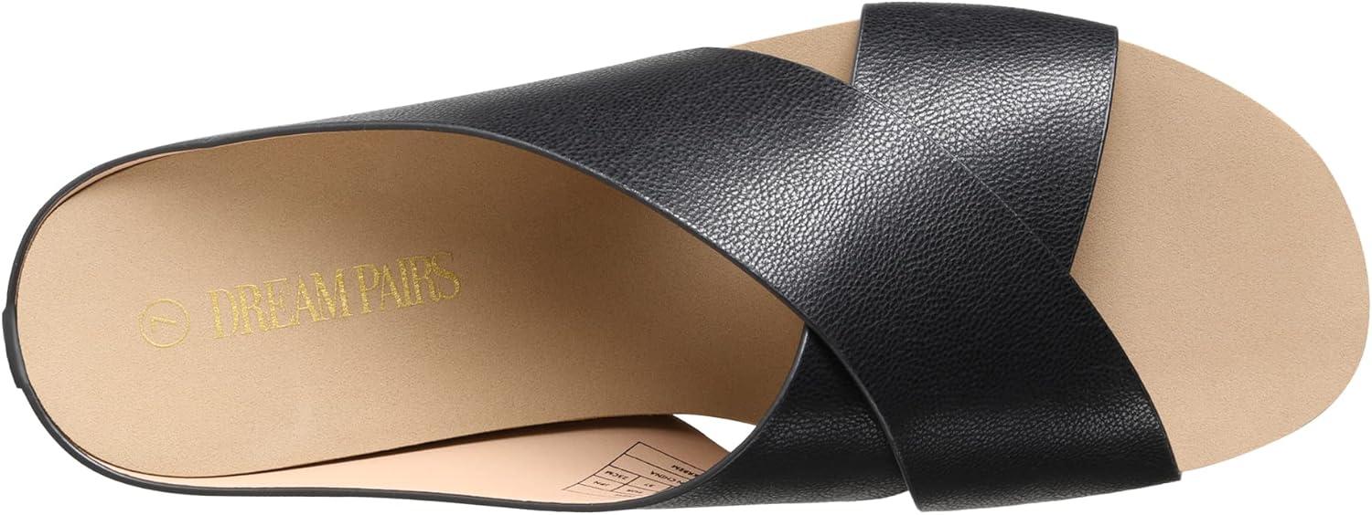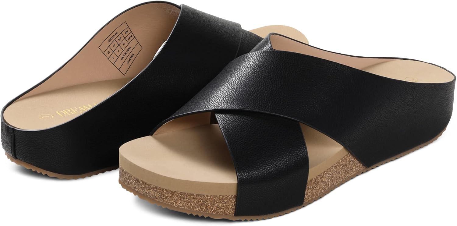 DREAM PAIRS Women’s Cork Slide Sandals Slip on Open Toe Cute Platform Criss Cross Flat Sandals for Summer(Black/Pu)
