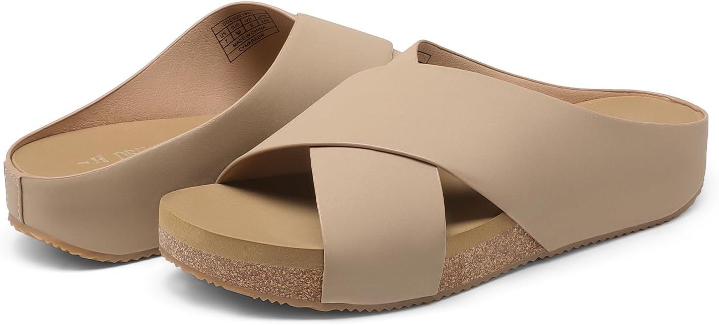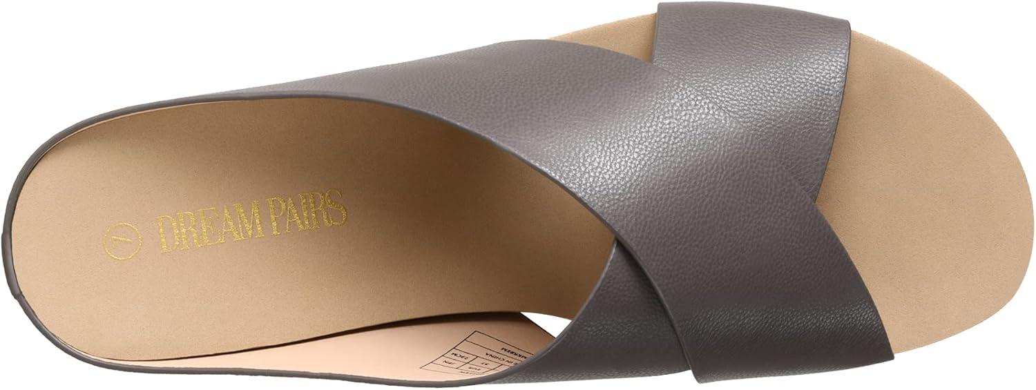 DREAM PAIRS Women’s Cork Slide Sandals Slip on Open Toe Cute Platform Criss Cross Flat Sandals for Summer(Taupe-nubuck)