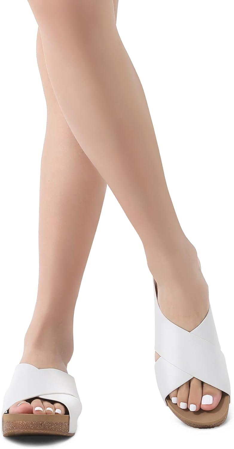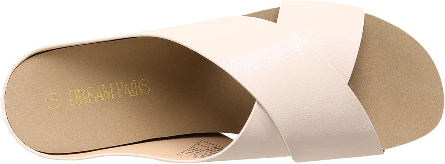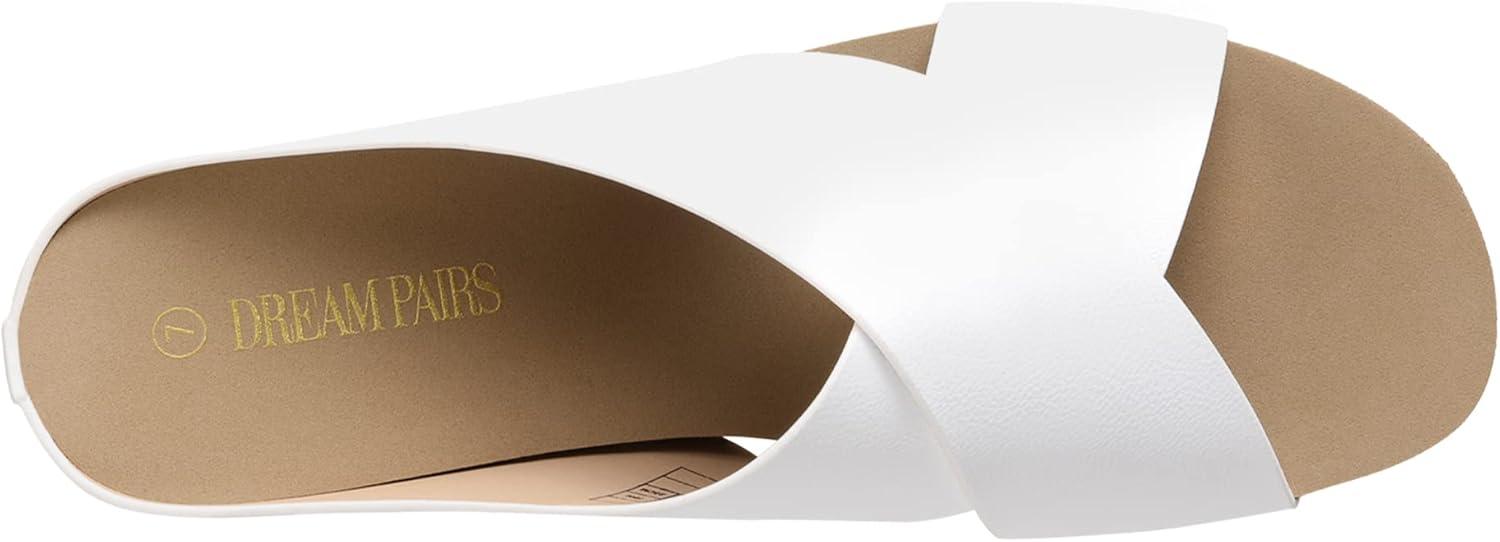 DREAM PAIRS Women’s Cork Slide Sandals Slip on Open Toe Cute Platform Criss Cross Flat Sandals for Summer(White/Pu)