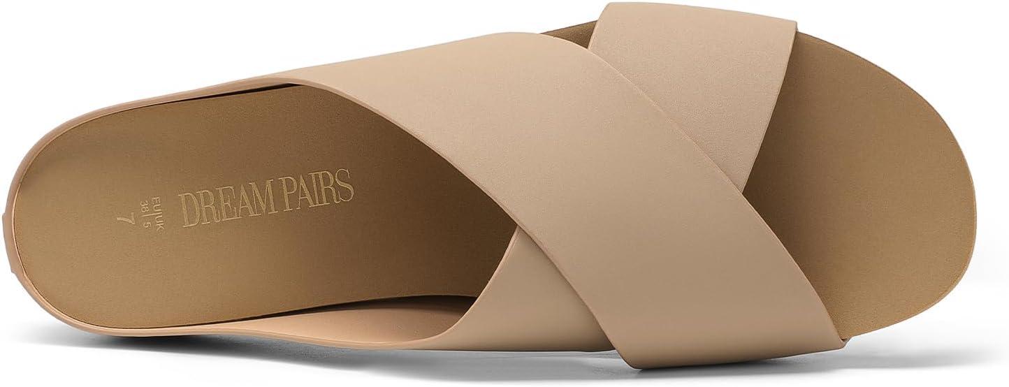 DREAM PAIRS Women’s Cork Slide Sandals Slip on Open Toe Cute Platform Criss Cross Flat Sandals for Summer(Brown/Pu)