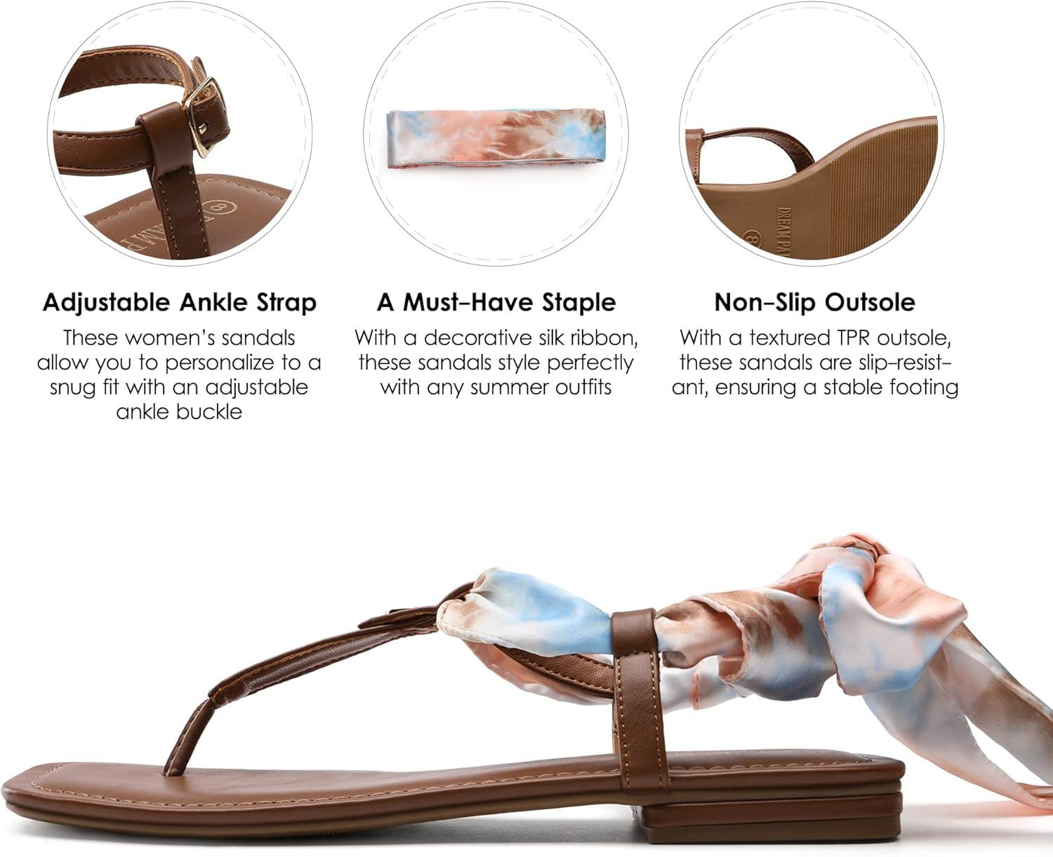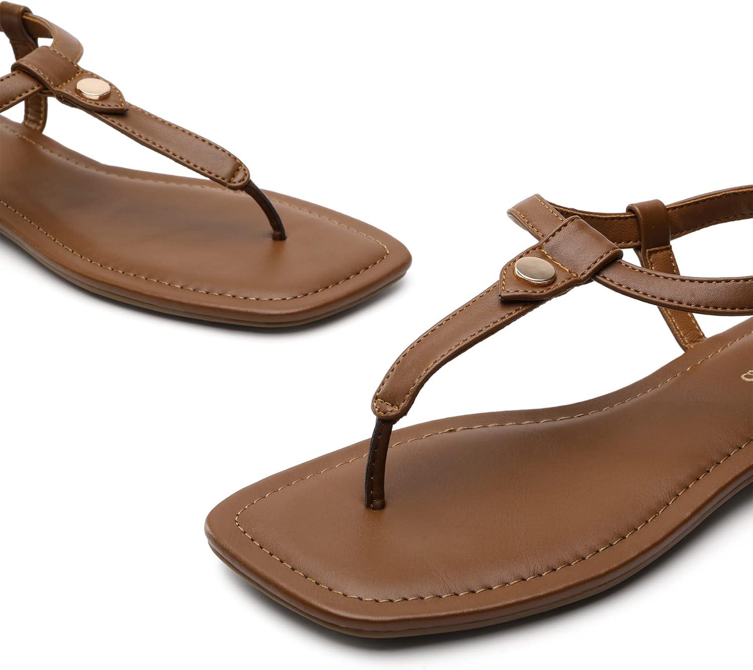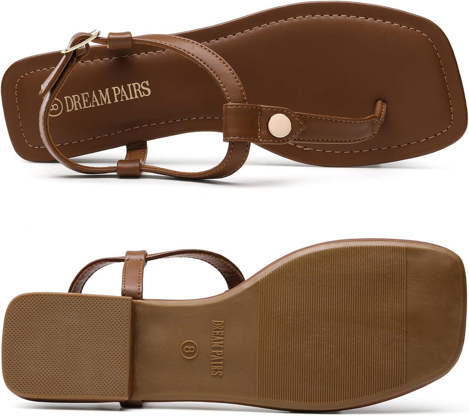 DREAM PAIRS Women’s T-Strap Thong Flat Sandals with Cute Square Toe Strappy for Summer(Brown)