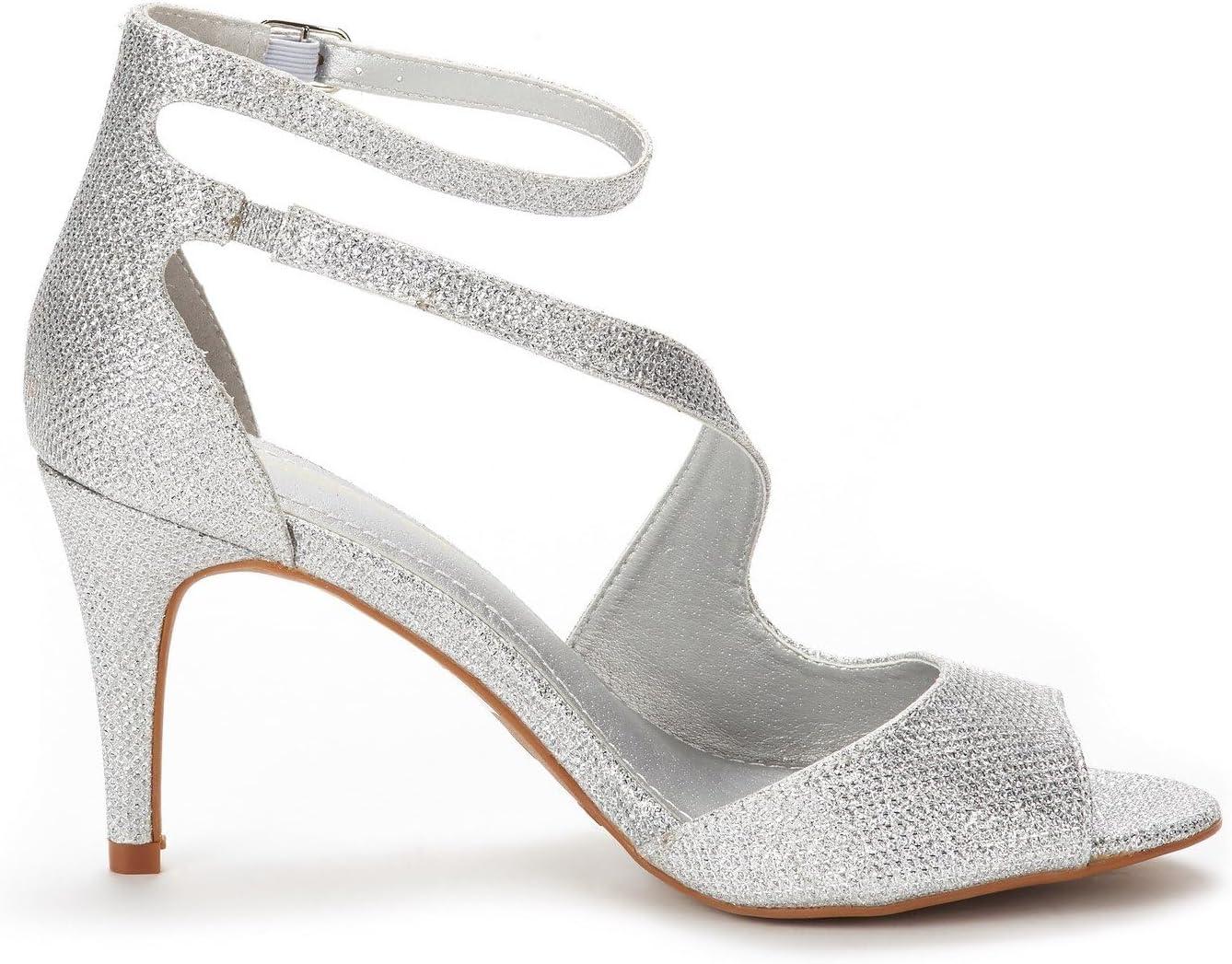 DREAM PAIRS Women’s Lexii Fashion Stilettos Open Toe Pump Heel Sandals(Silver Glitter)