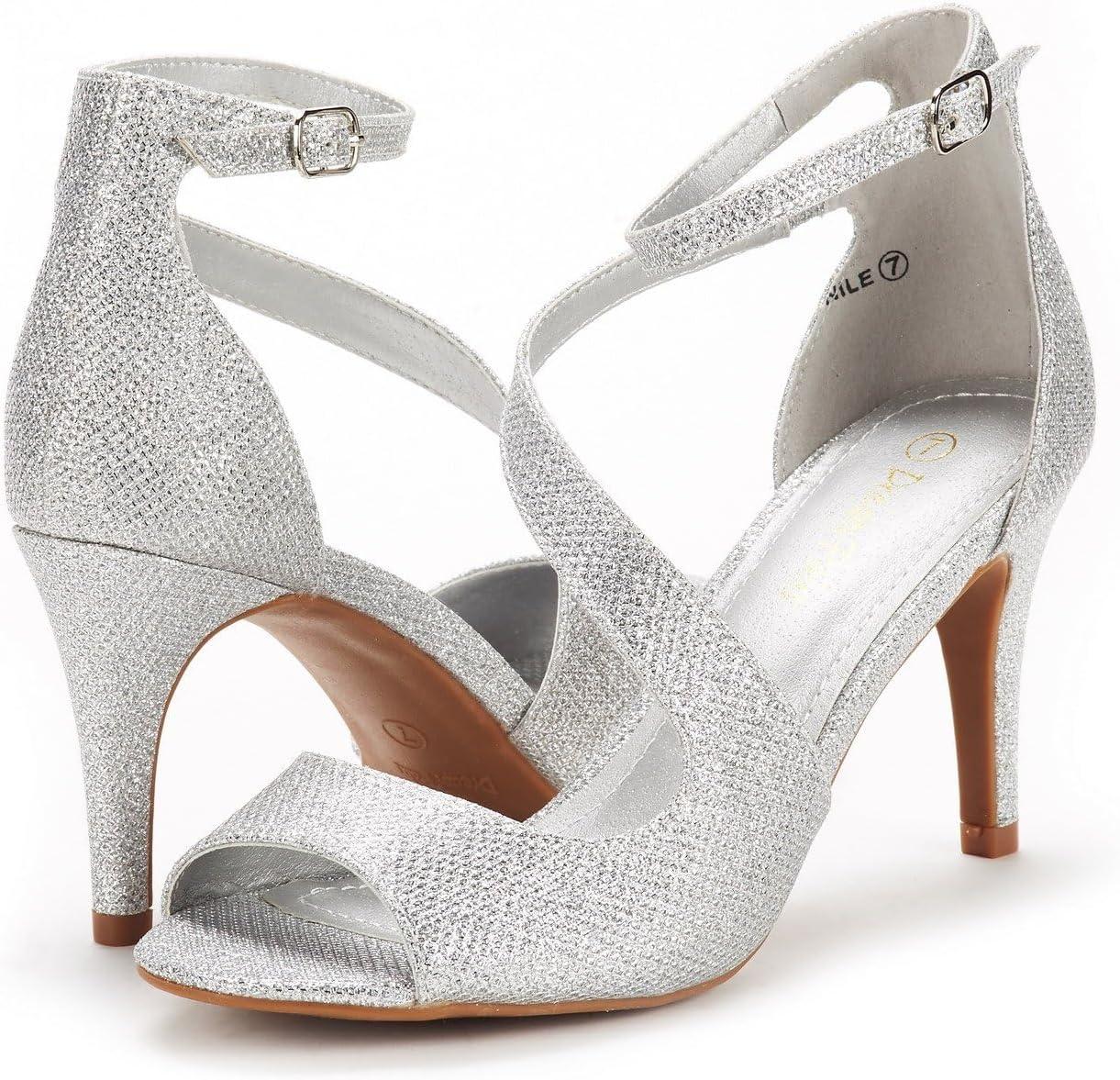 DREAM PAIRS Women’s NILE Fashion Stilettos Open Toe Pump Heel Sandals(Silver Glitter)