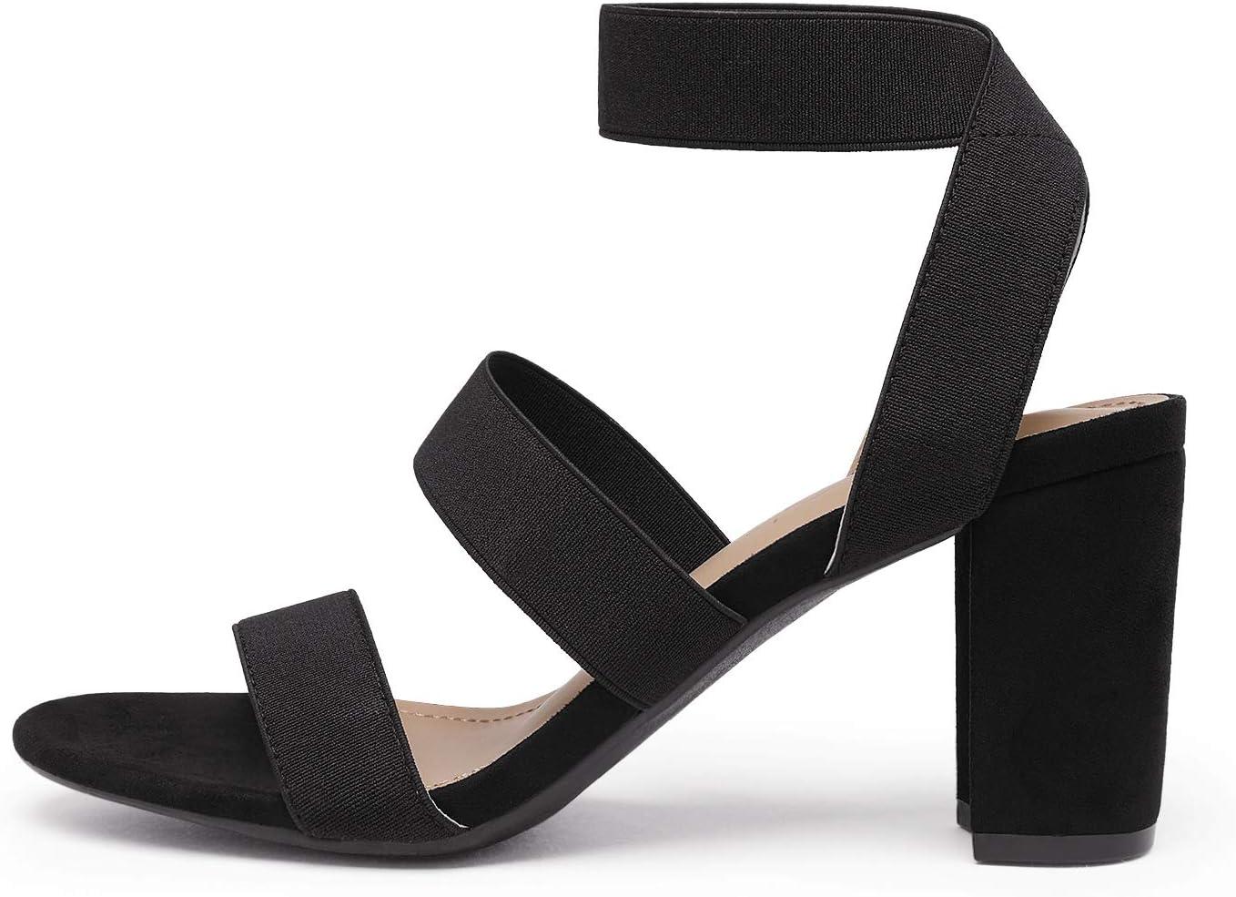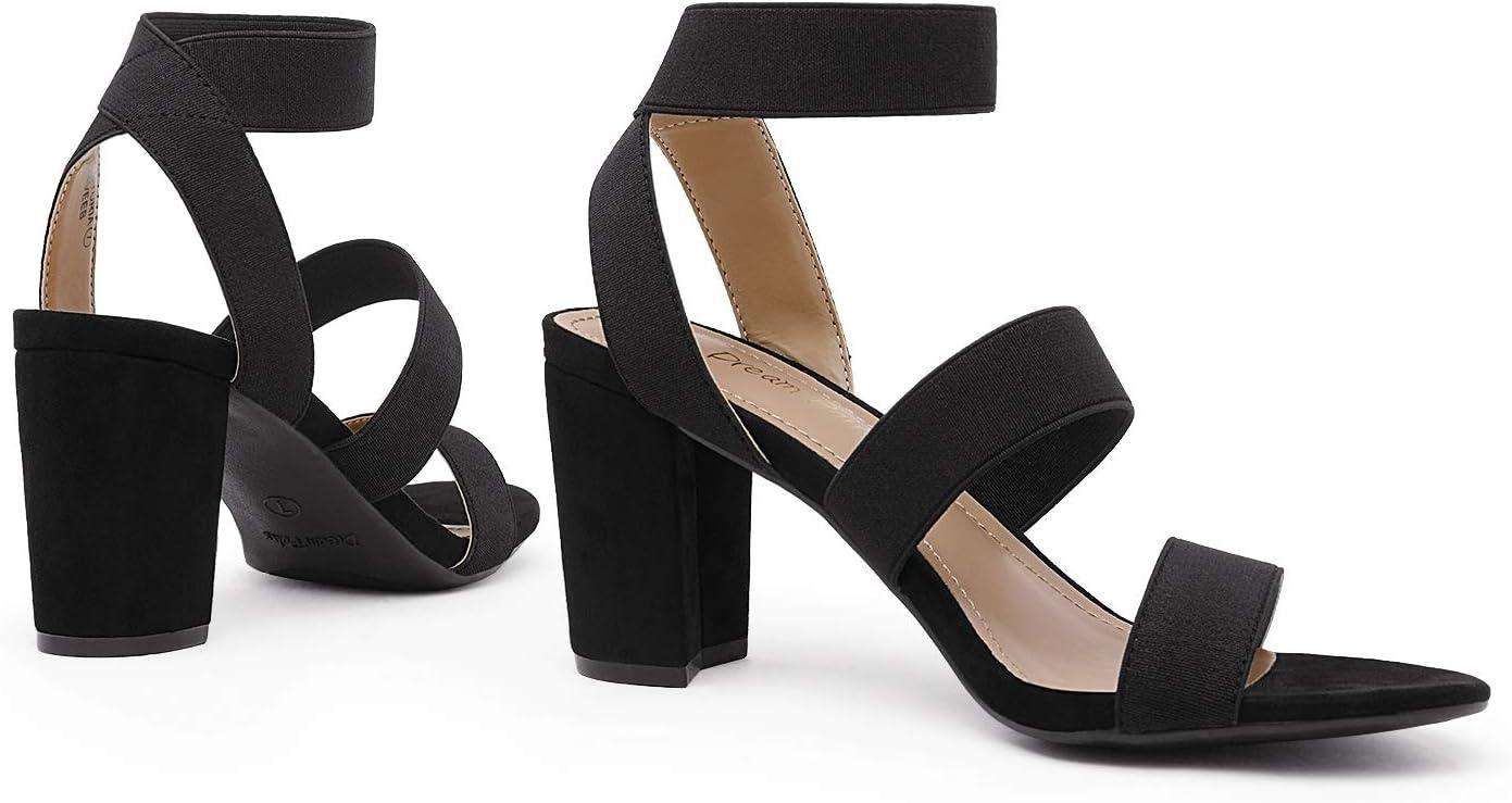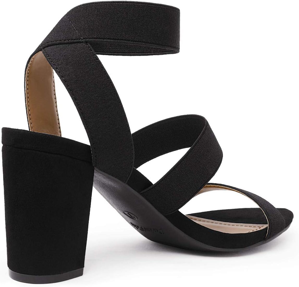 DREAM PAIRS Women’s Open Toe High Chunky Elastic Strap Dress Heel Sandals(Black)