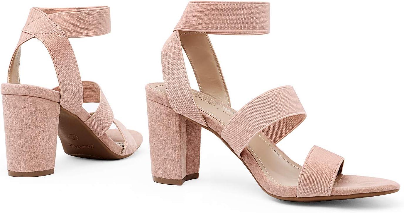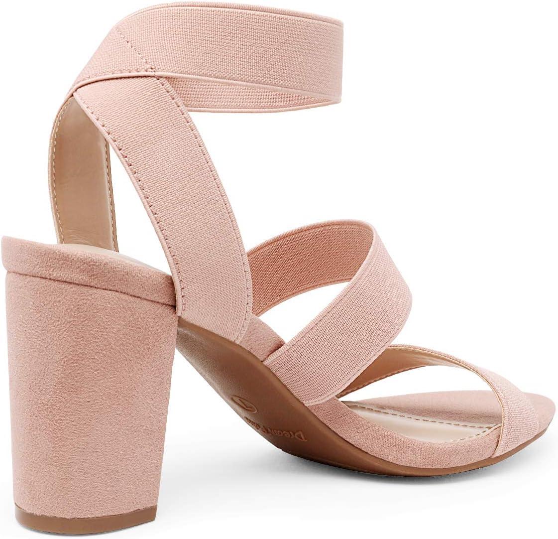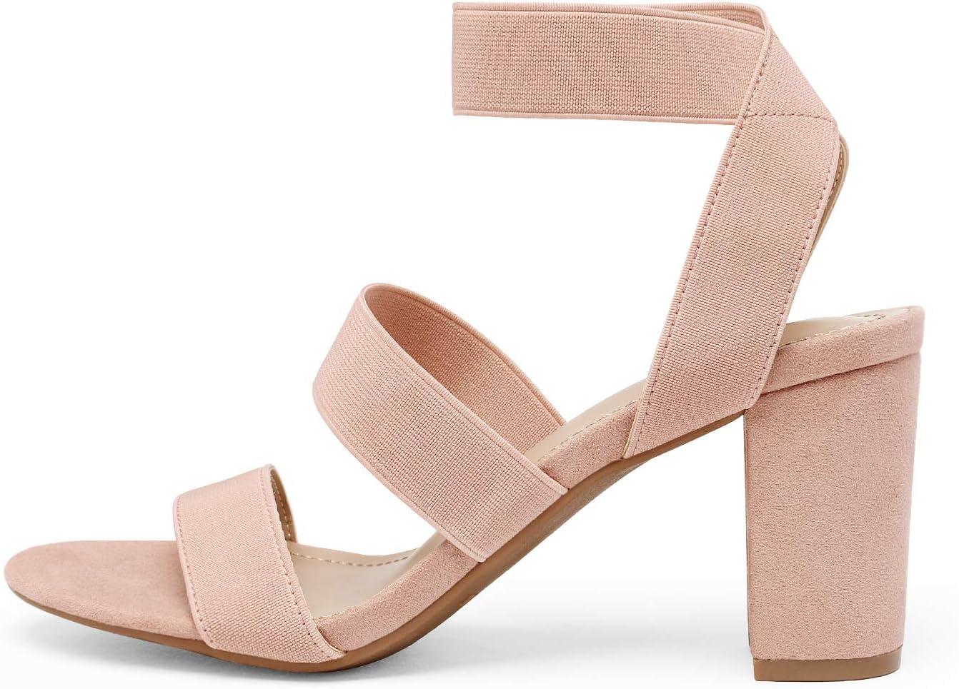 DREAM PAIRS Women’s Open Toe High Chunky Elastic Strap Dress Heel Sandals(Blush)