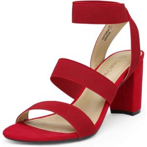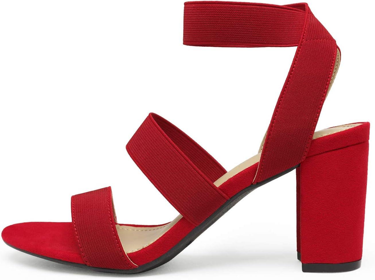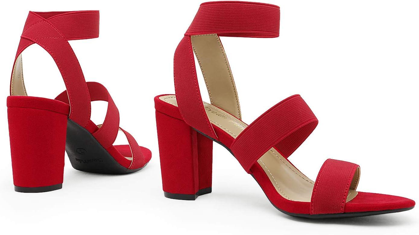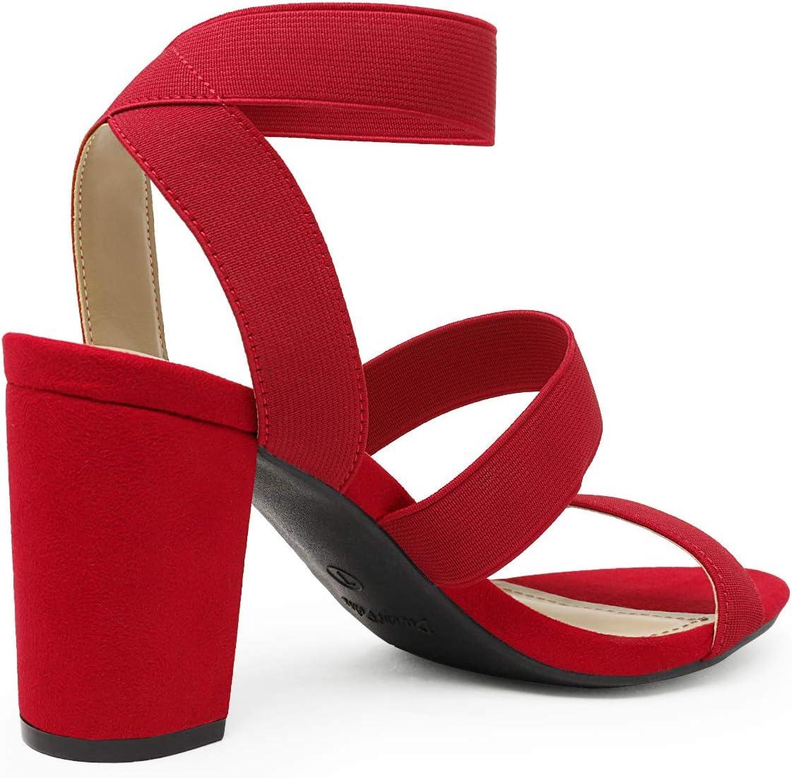 DREAM PAIRS Women’s Open Toe High Chunky Elastic Strap Dress Heel Sandals(Red)