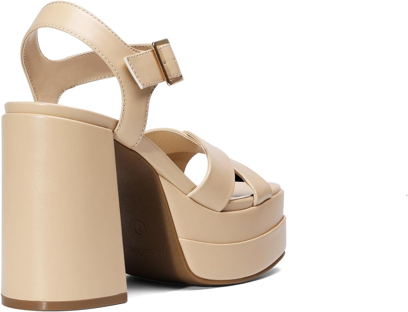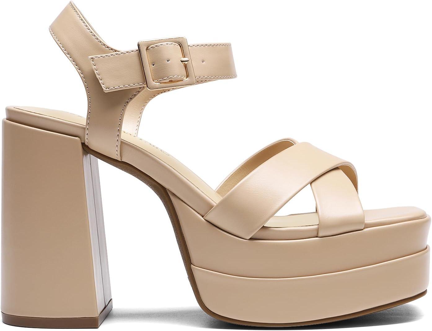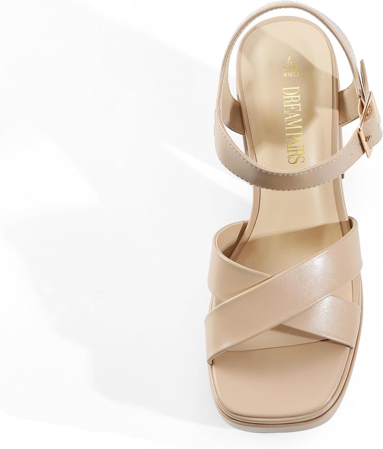 DREAM PAIRS Women’s Platform Chunky Heels Square Open Toe Ankle Strap High Heeled Sandals Y2K Shoes for Party Brunch(Nude)