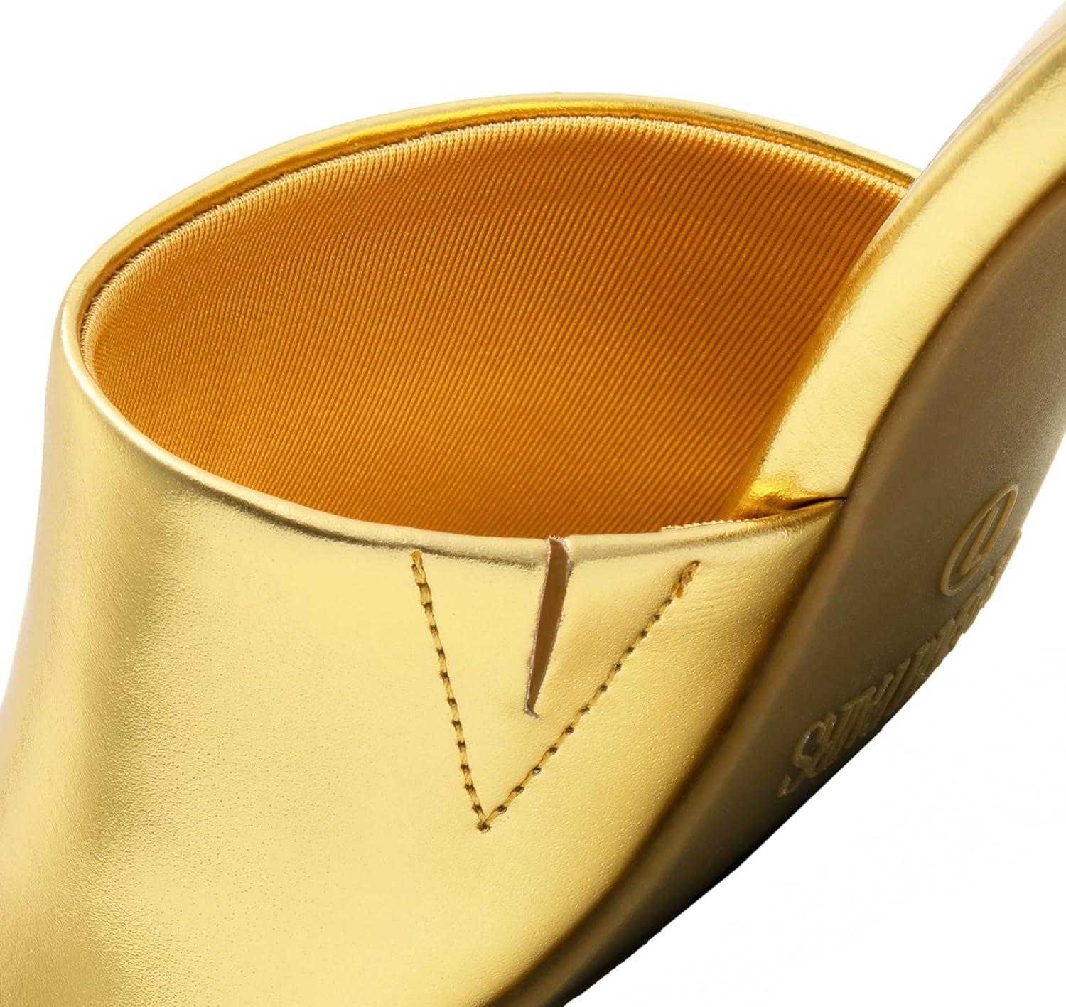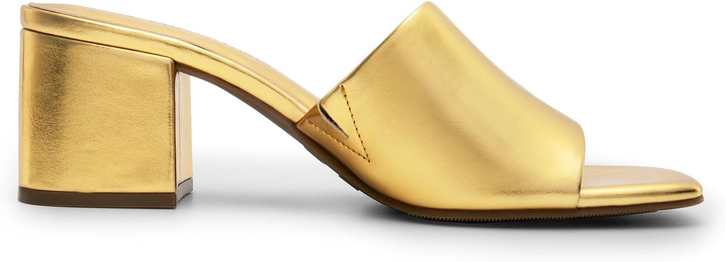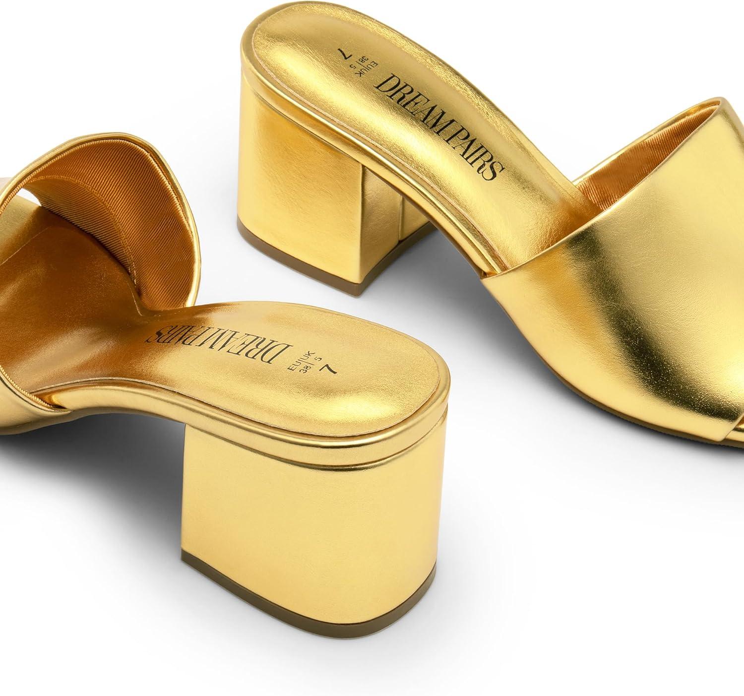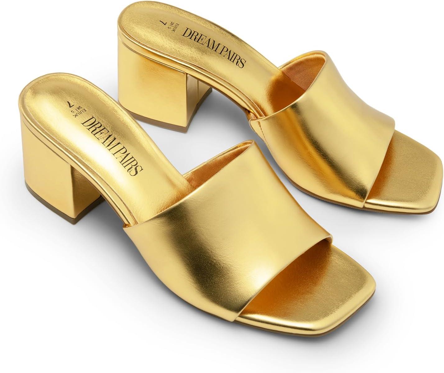 DREAM PAIRS Women’s Square Open Toe Heels Sandals Low Block Chunky Heeled Sandals Slide Sandals Slip on Comfortable Casual Pumps Shoes(Gold-pu)