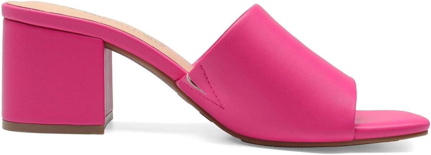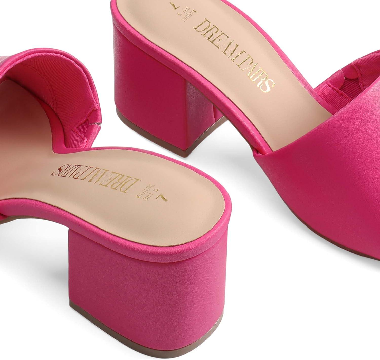 DREAM PAIRS Women’s Square Open Toe Heels Sandals Low Block Chunky Heeled Sandals Slide Sandals Slip on Comfortable Casual Pumps Shoes(Hot Pink-pu)