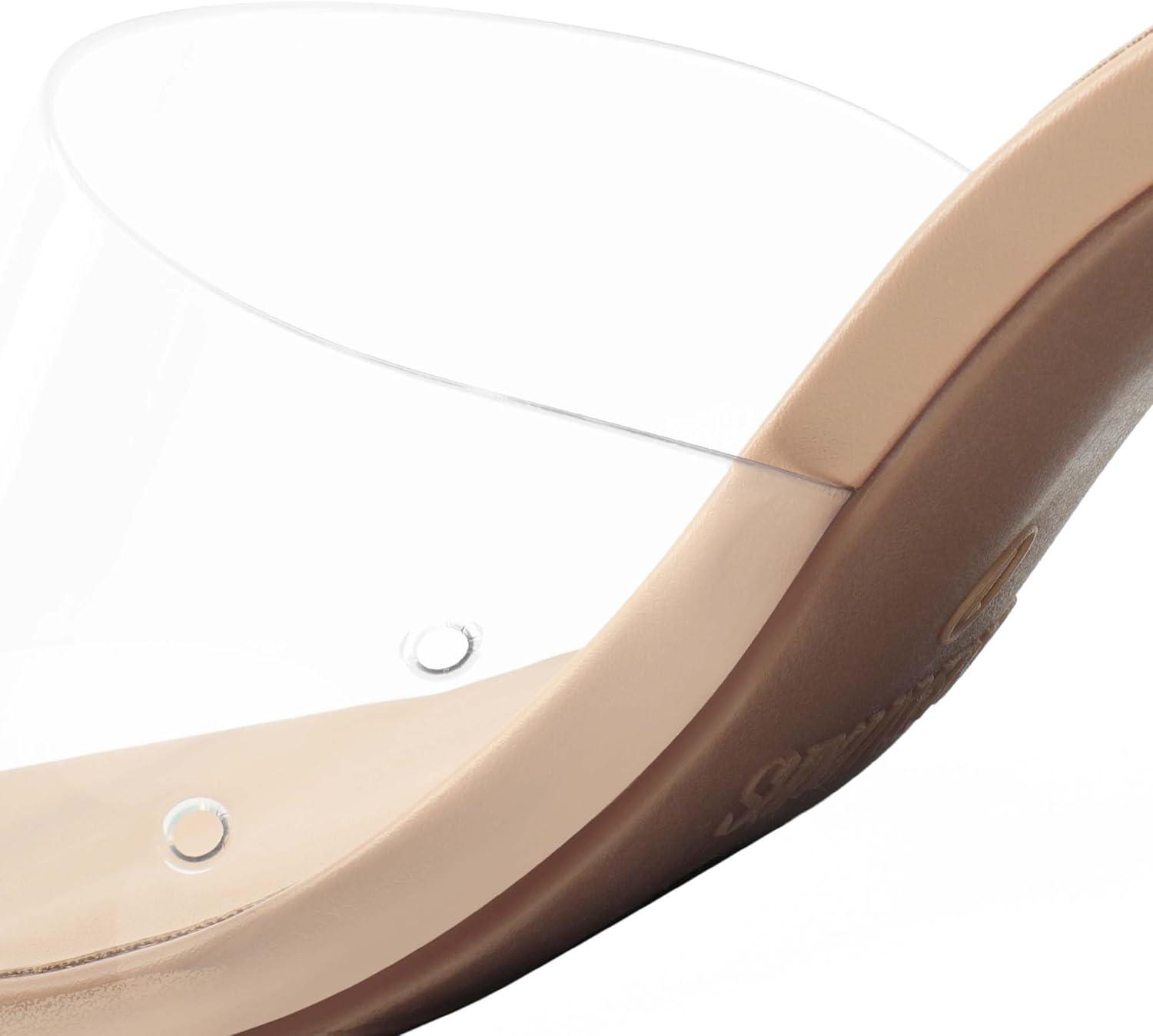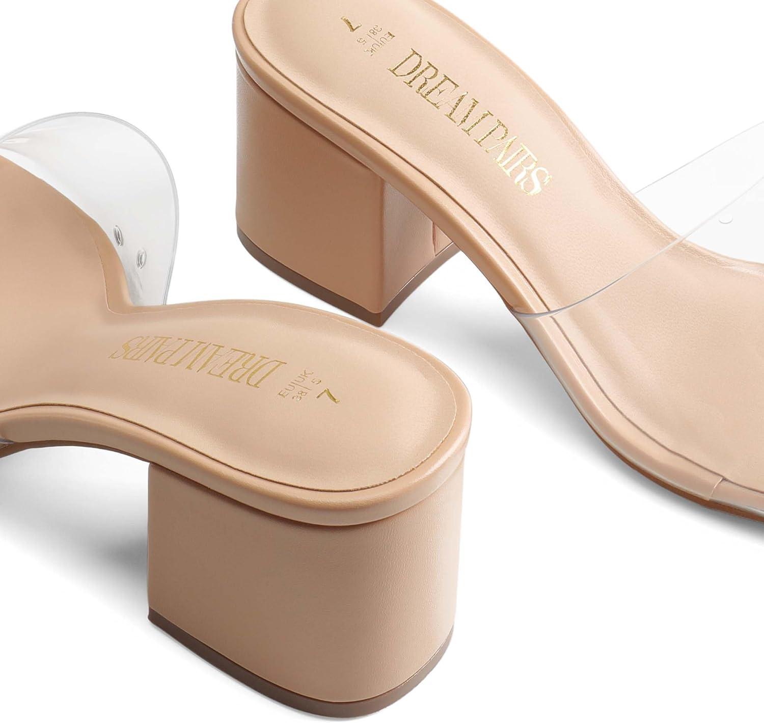 DREAM PAIRS Women’s Square Open Toe Heels Sandals Low Block Chunky Heeled Sandals Slide Sandals Slip on Comfortable Casual Pumps Shoes(Nude-clear)