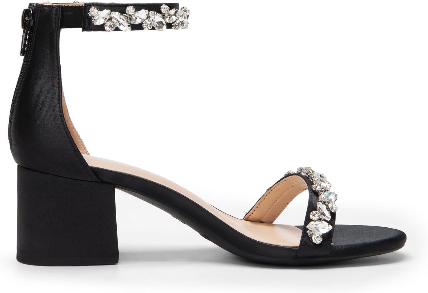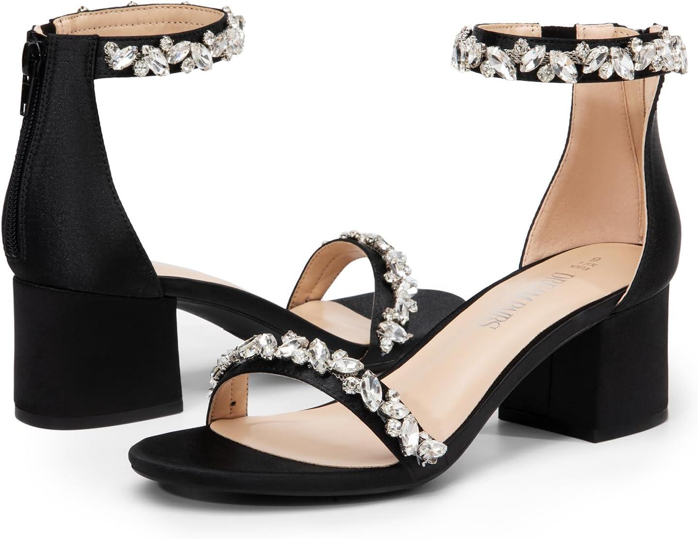 DREAM PAIRS Womens Low-Chunk Low Heel Pump Sandal(Black-satin)