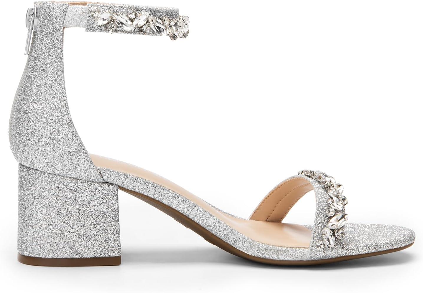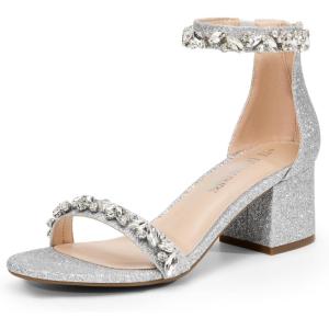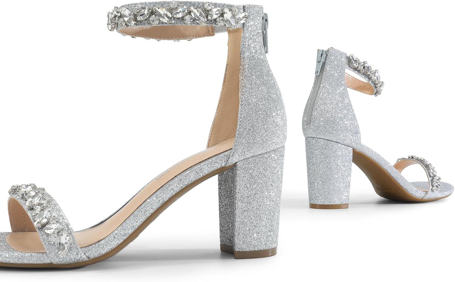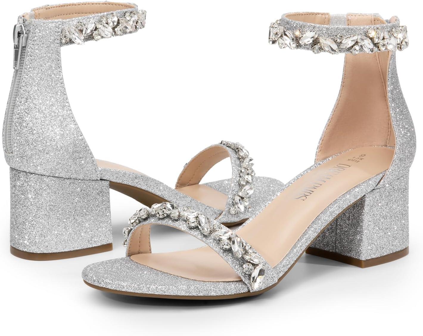 DREAM PAIRS Womens Low-Chunk Low Heel Pump Sandal(Silver-rhinestone)