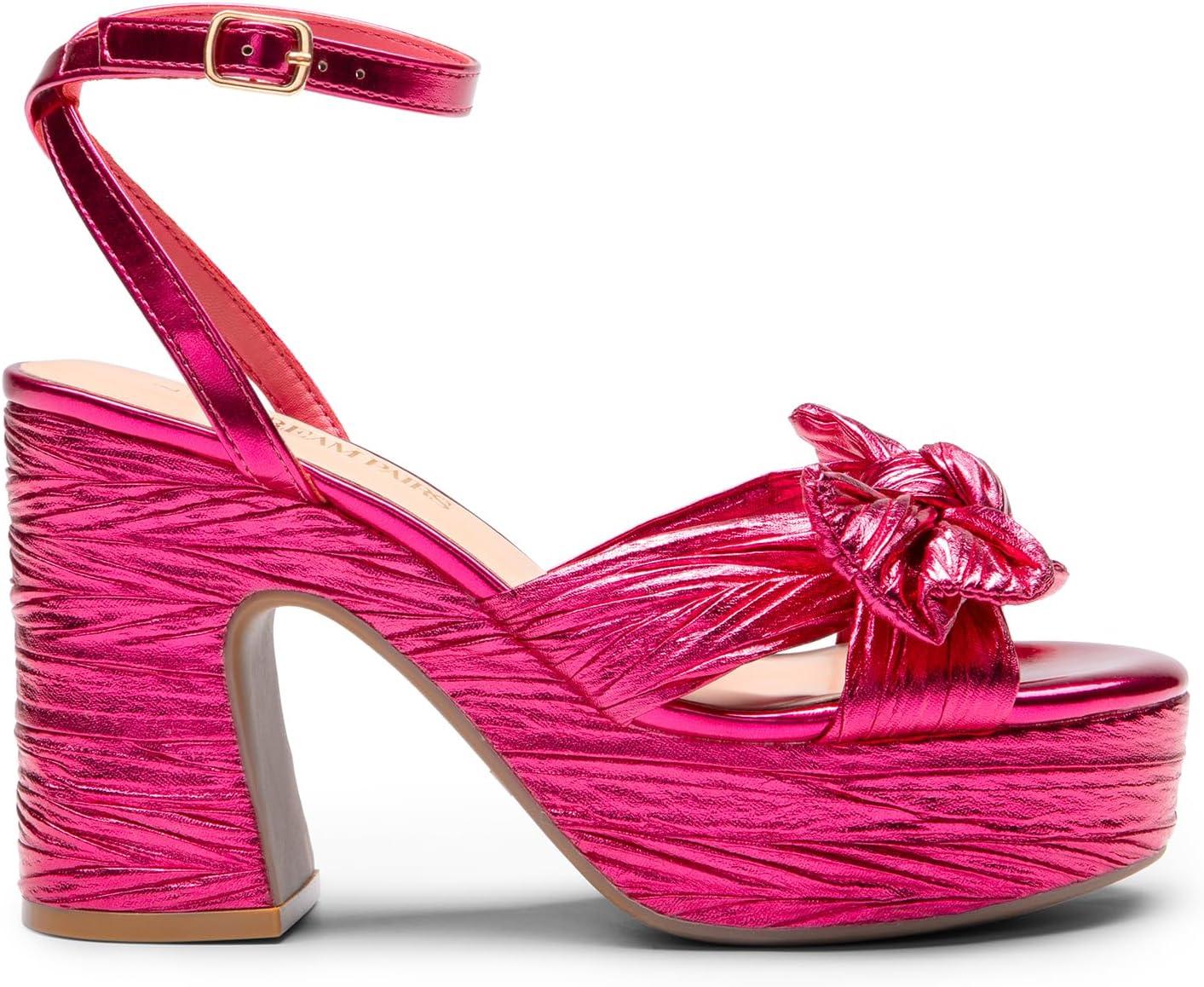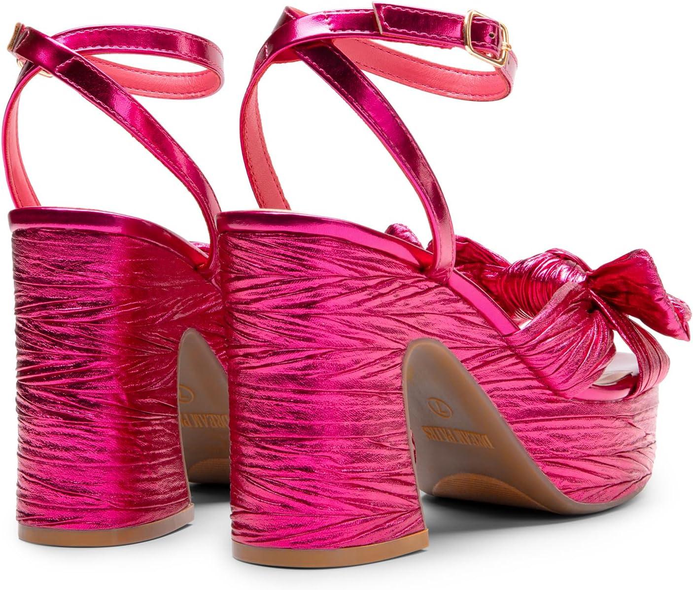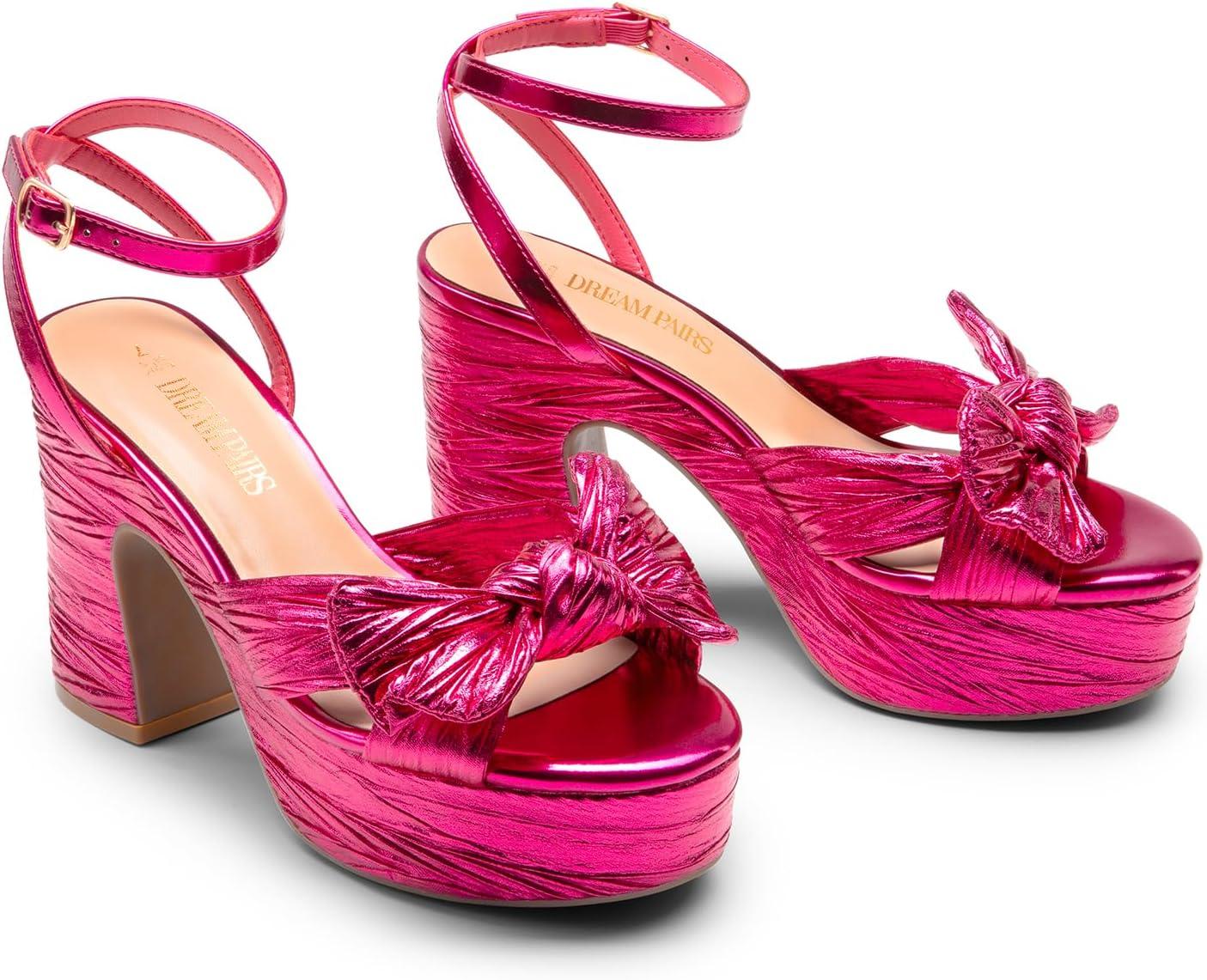 DREAM PAIRS Women’s Chunky Platform Heels Sandals Pleated Bow Knot Ankle Buckle Strap Heeled Sandals Open Toe Comfortable Wedding Party Dress Shoes(Hot Pink)